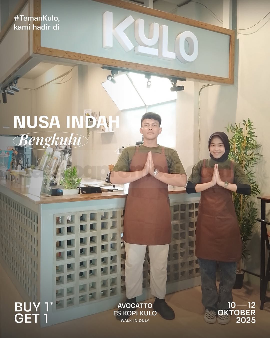 Promo Opening Kedai Kopi Kulo Nusa Indah Bengkulu! Beli 1 Avocatto GRATIS 1 Es Kopi Kulo cuma di tanggal 10โ12 Oktober 2025.