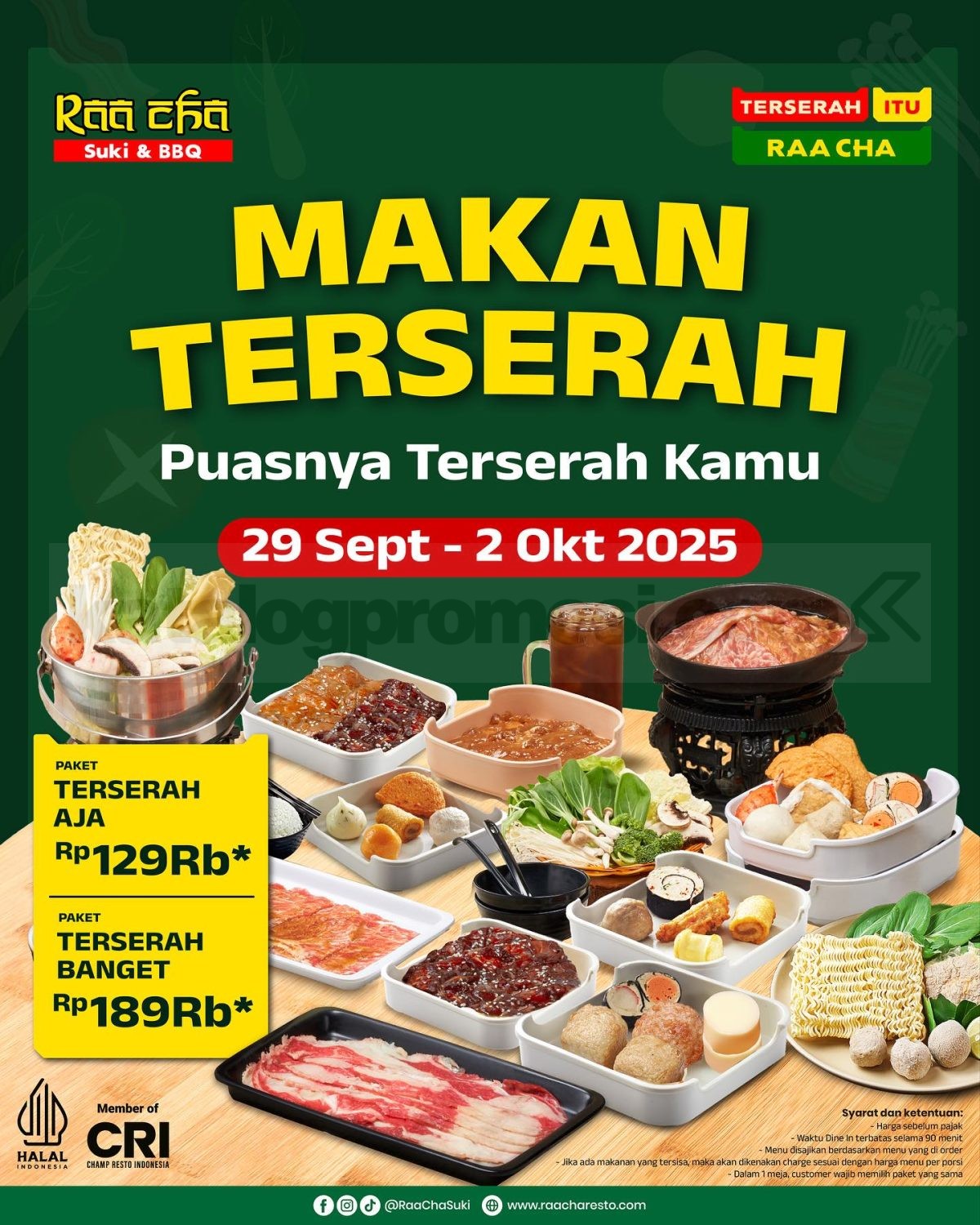 🔸 Promo Makan Terserah — kamu bebas pilih menu sesuai selera dan tetap puas, karena semua makanan Raa Cha dijamin fresh dan menggugah selera!