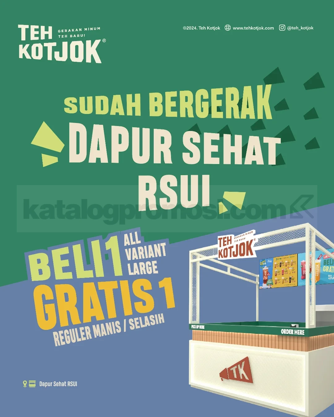 • Membeli 1 Teh Kotjok ukuran Large mendapatkan 1 Teh Kotjok ukuran Regular secara gratis.