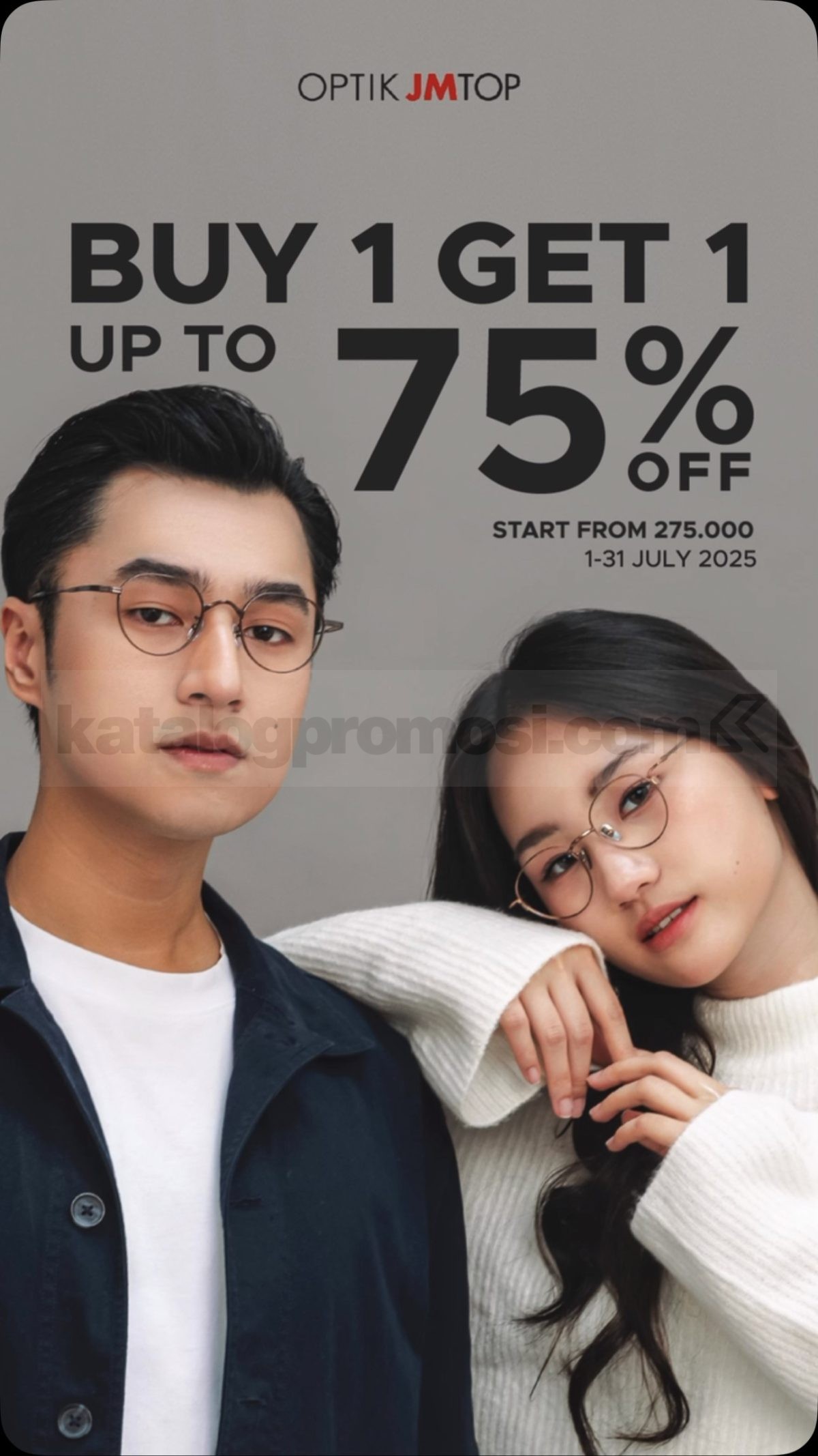 Promo OPTIK JM TOP BUY 1 GET 1 Get 75% OFF Start From Rp 275.000* Berlaku hingga 31 Desember 2025