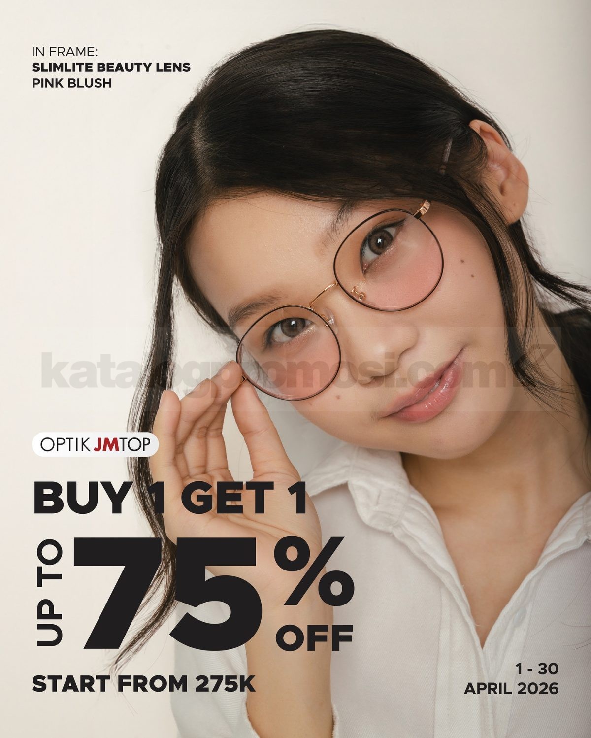 Promo Optik JMTOP Buy 1 Get 1 75% mulai Rp. 275.000 untuk produk kedua berlaku mulai tanggal 1 April 2026 – 30 April 2026 di outlet