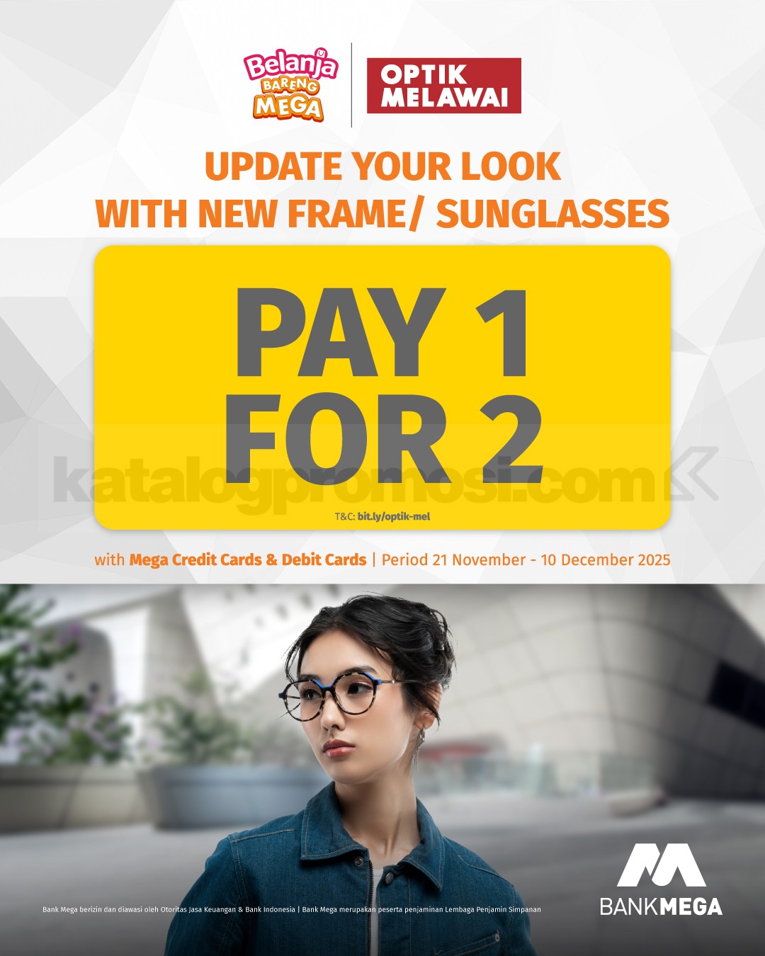 👉 Cek gambar promo Optik Melawai Bank Mega Pay 1 For 2 Frame & Sunglasses di bawah ini untuk lihat detailnya dan pastikan kamu siap pilih item favorit sebelum promo berakhir!
