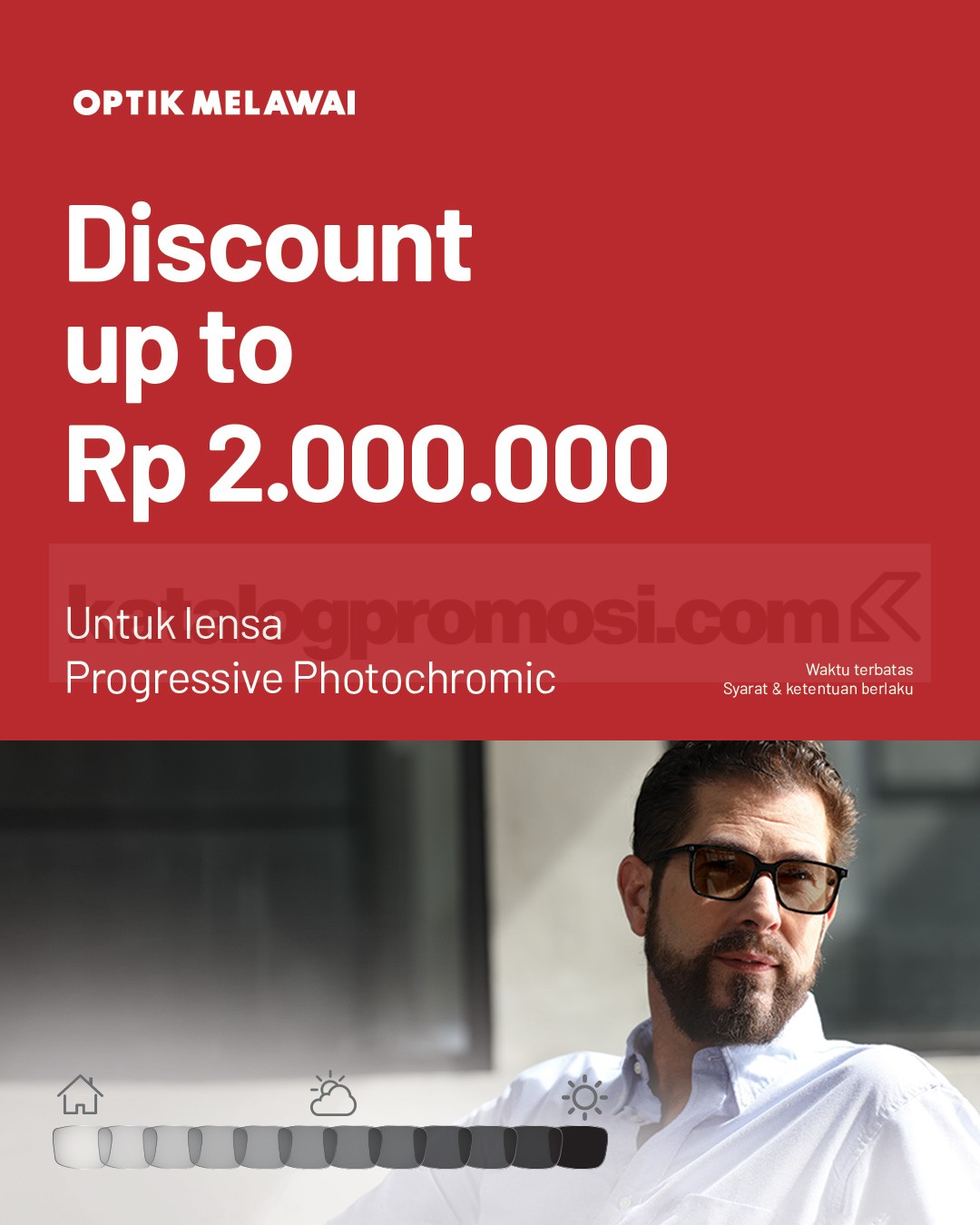 • Promo berlaku untuk semua pembelian lensa progressive photochromic sesuai ketentuan Optik Melawai.