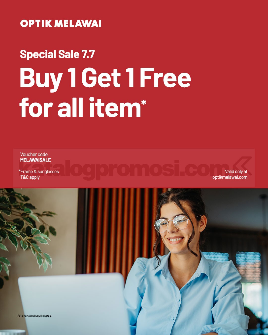 Promo Optik Melawai 11.11 Buy 1 Get 1 Free All Item frame & sunglasses, gunakan kode MELAWAISALE, berlaku selama persediaan masih ada di optikmelawai.com.