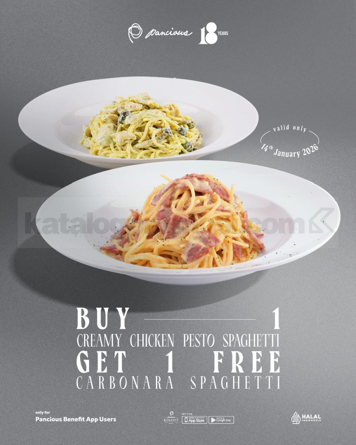 Promo Pancious Buy 1 Get 1 Free Creamy Pasta hanya berlaku pada 14 Januari 2026.