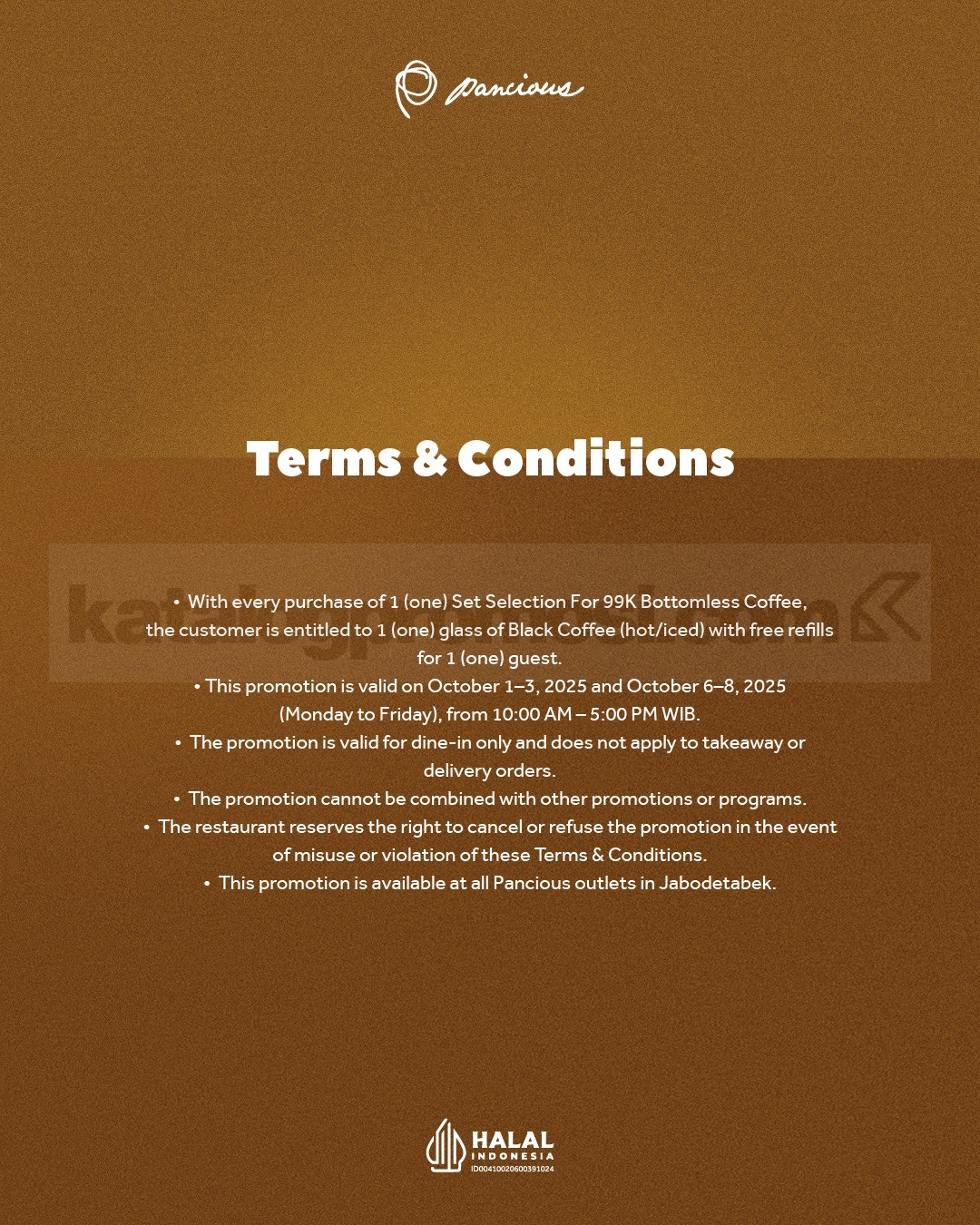 Buruan manfaatin kesempatan ini, karena promo ini cuma ada di bulan Oktober aja. Saatnya upgrade quality time kamu dengan secangkir kopi hitam yang mantap dan menu spesial yang bikin lidah happy.