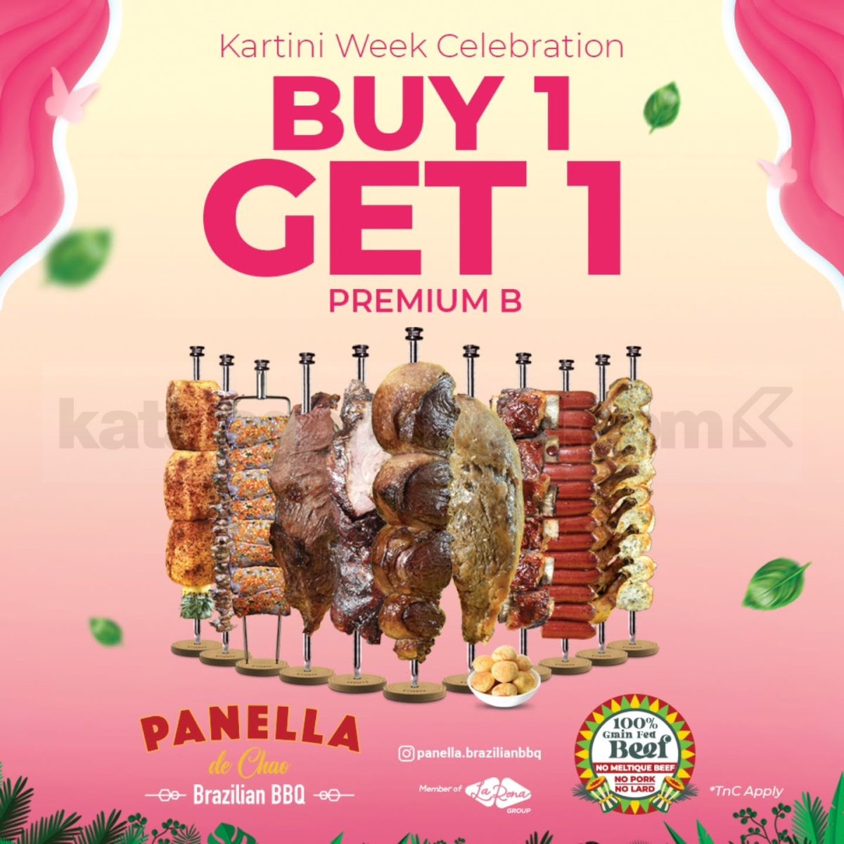 Promo Panella de Chao Hari Kartini Buy 1 Gratis 1 Premium B berlaku di Panella de Chao Brazilian BBQ Pondok Indah Mall 3 selama periode program berlangsung.