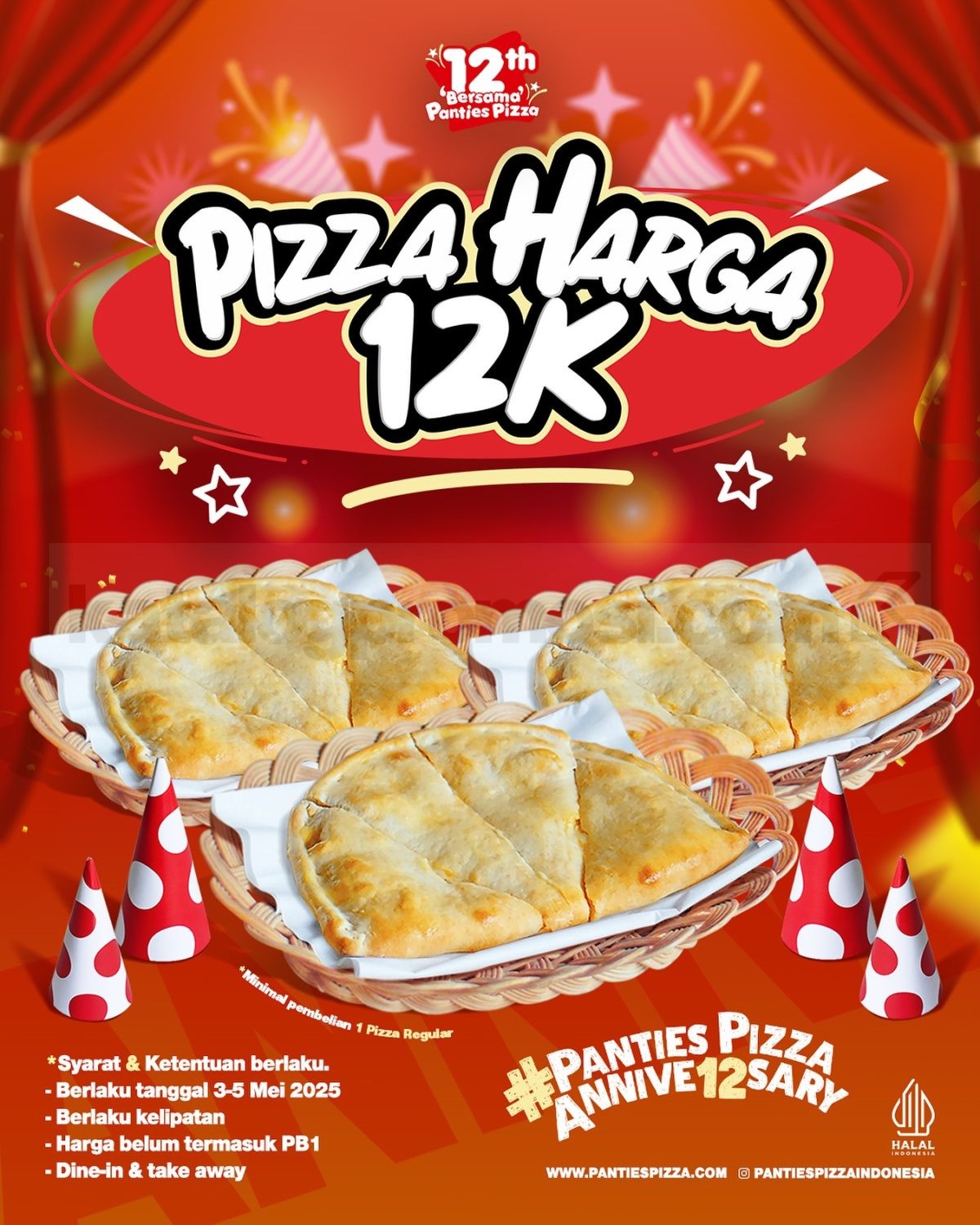 Promo Panties Pizza Hari Pelanggan Nasional diskon 30% untuk 1 pizza regular + 1 tea, berlaku 4–6 September 2025.