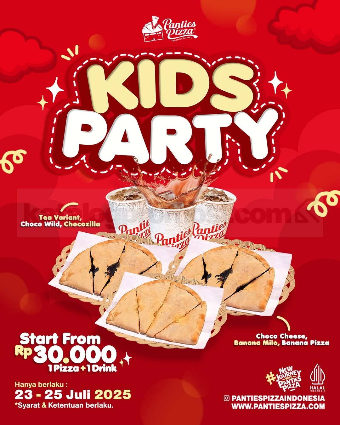 Promo Panties Pizza Hari Pelanggan Nasional diskon 30% untuk 1 pizza regular + 1 tea, berlaku 4–6 September 2025.