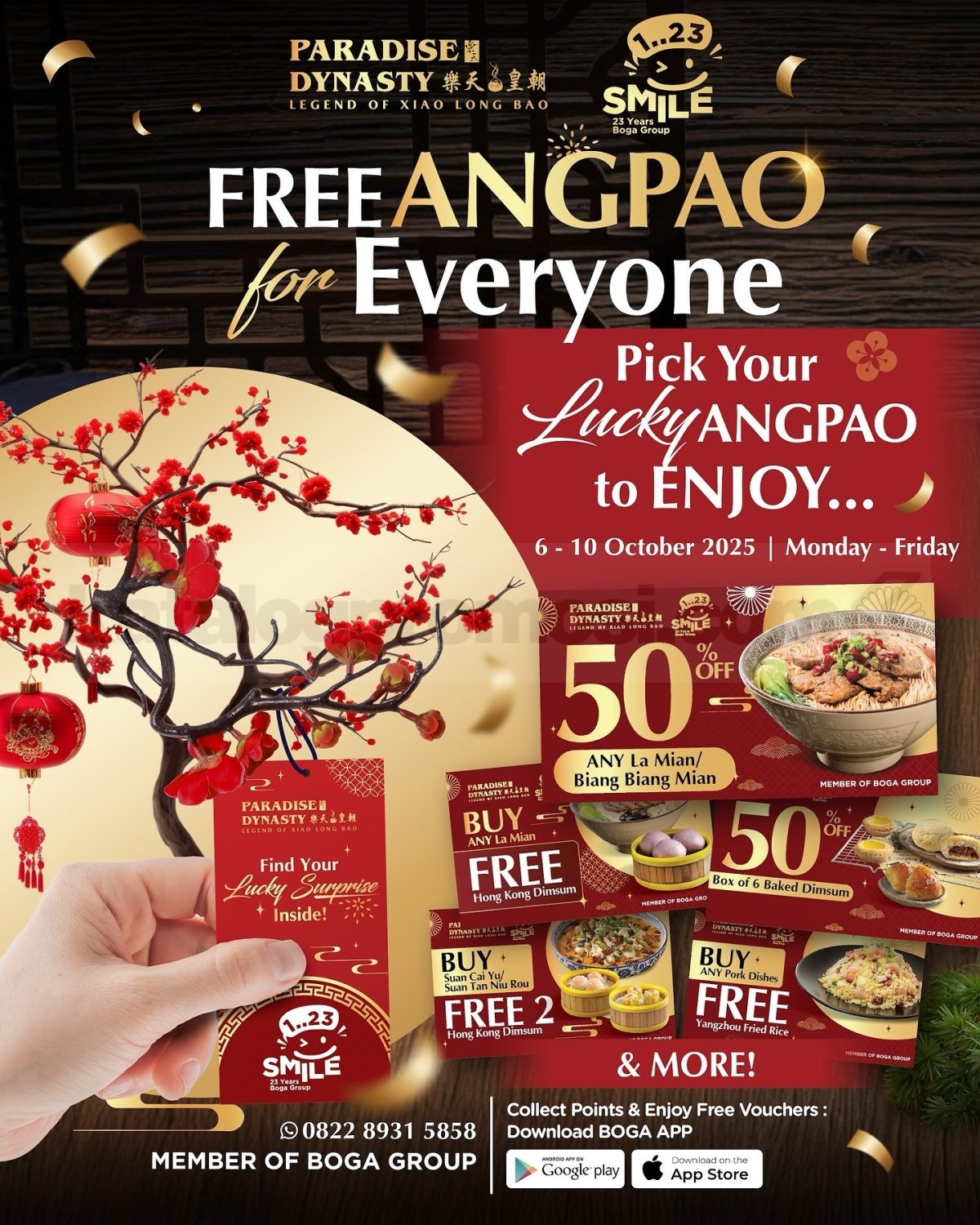 Dalam rangka perayaan ulang tahun ke-23 Boga Group, Paradise Dynasty kasih hadiah spesial buat semua pelanggan yang datang dine-in selama periode 6–10 Oktober 2025 (Senin–Jumat).