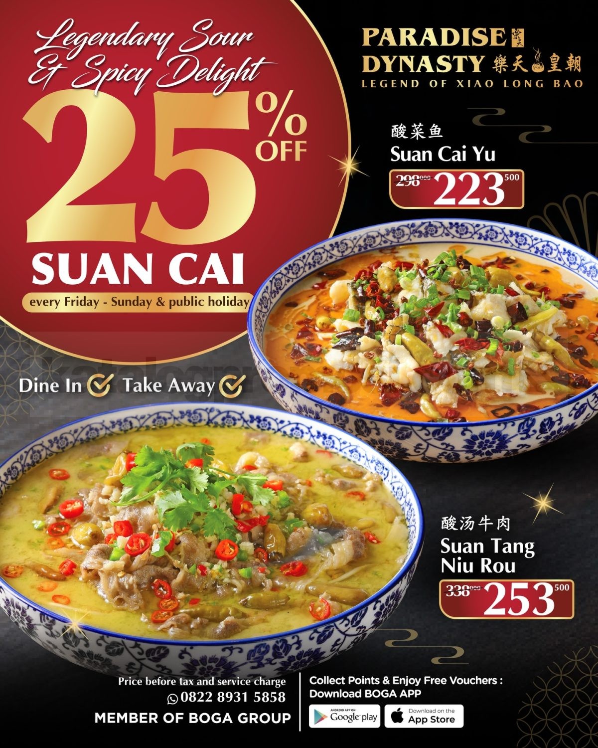 Legenda rasa asin, asam, dan pedas kembali menggoda lidah lewat promo Paradise Dynasty Sour & Spicy Delight Diskon 25%! Sensasi Suan Cai Yu dan Suan Tang Niu Rou yang terkenal dengan kuah panas, aroma menggugah, dan lapisan rasa yang kaya kini jadi lebih terjangkau setiap akhir pekan.