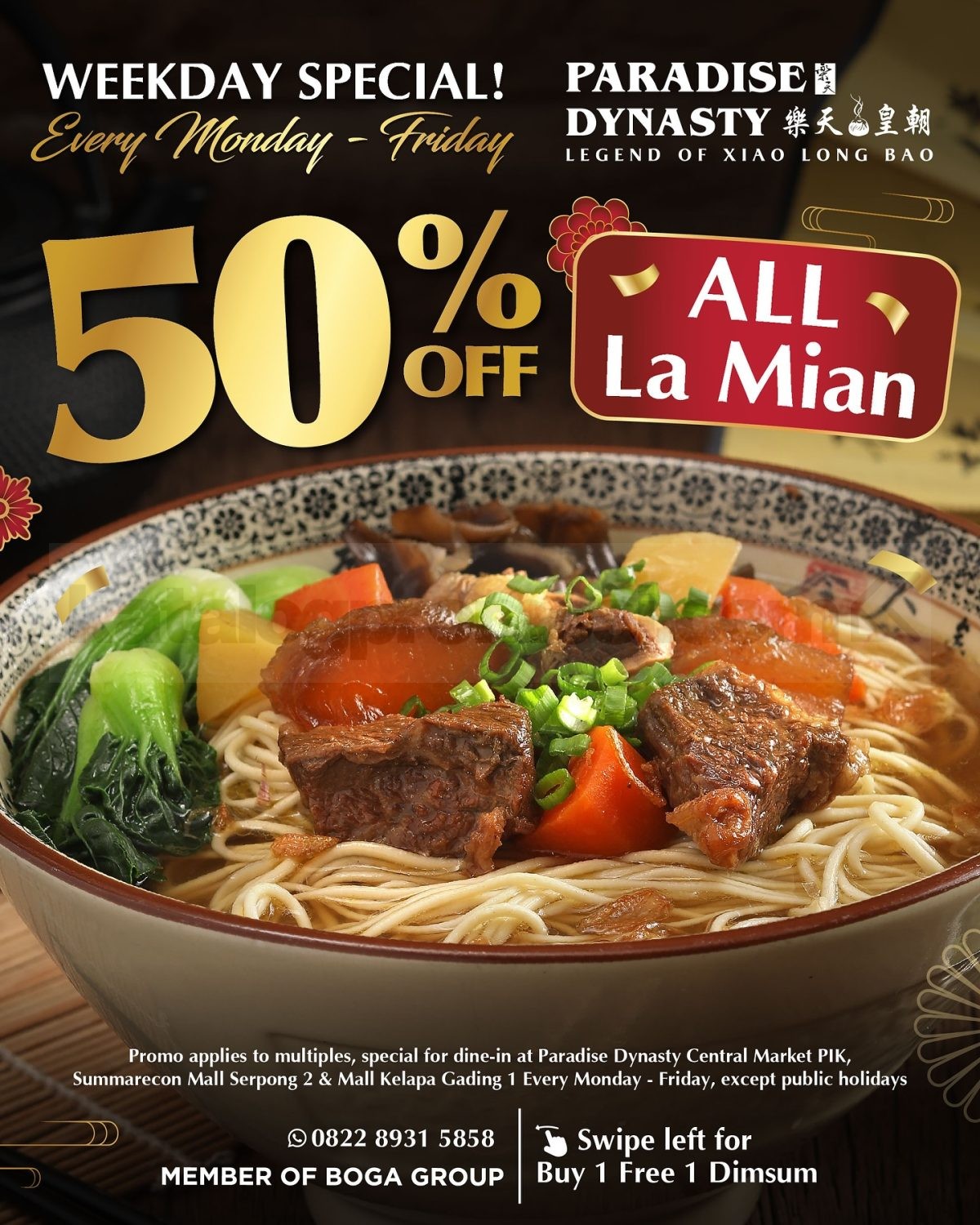 Kamu bisa menikmati promo ini setiap Jumat–Minggu serta hari libur nasional, sehingga cocok banget untuk santap keluarga, makan siang bareng teman, atau sekadar craving menu pedas-asam yang penuh comfort. Paradise Dynasty menyediakan promo ini di beberapa lokasi terpilih di Jakarta dan Tangerang, sehingga pastikan kamu mampir ke outlet yang berpartisipasi.