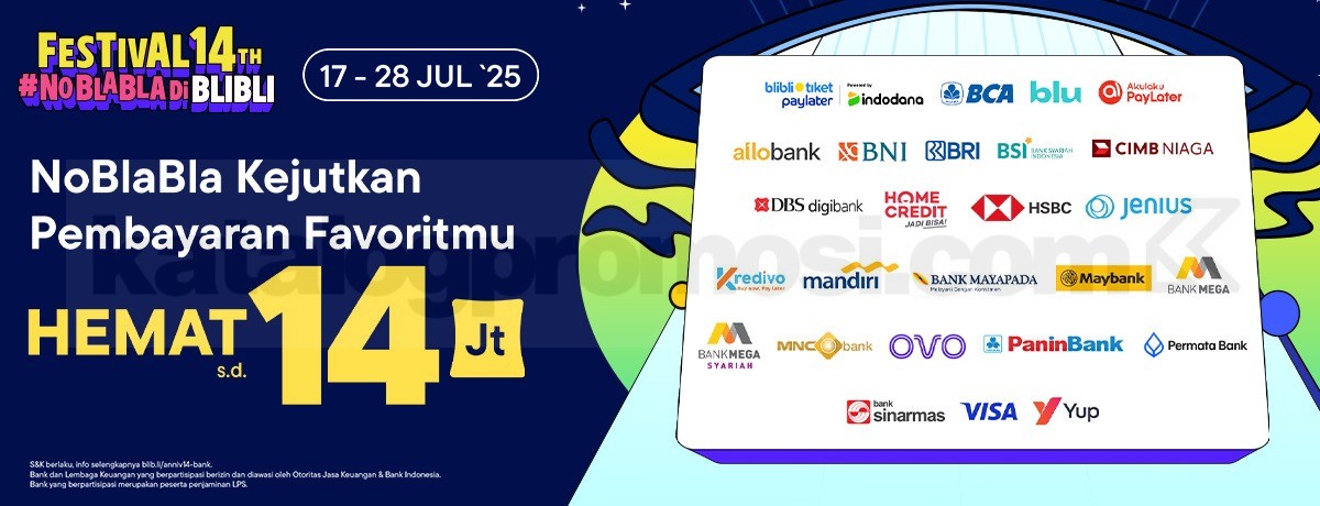 Blibli lagi ngerayain 14th Anniversary dan ada kejutan yang nggak main-main! 🎉 Di promo spesial ini, kamu bisa hemat sampai 14 juta cuma dengan pilih payment partner favoritmu. Mulai dari kartu kredit, e-wallet, kartu debit, sampai cicilan tanpa kartu kredit—semuanya bisa kasih diskon atau cashback ekstra! 💸
