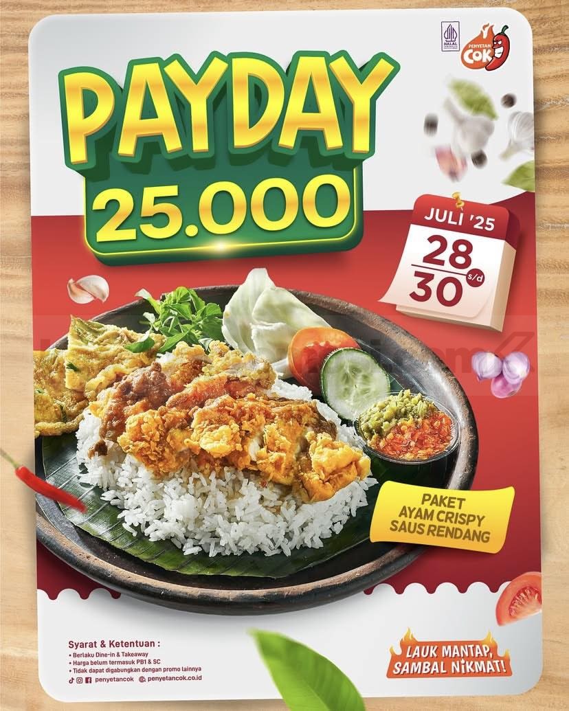 Promo Penyetan Cok Payday Deals Paket Nasi Goreng Rp. 25 ribu dengan paket nasi goreng cok dan es teh, berlaku 25 – 27 November 2025 di seluruh outlet.