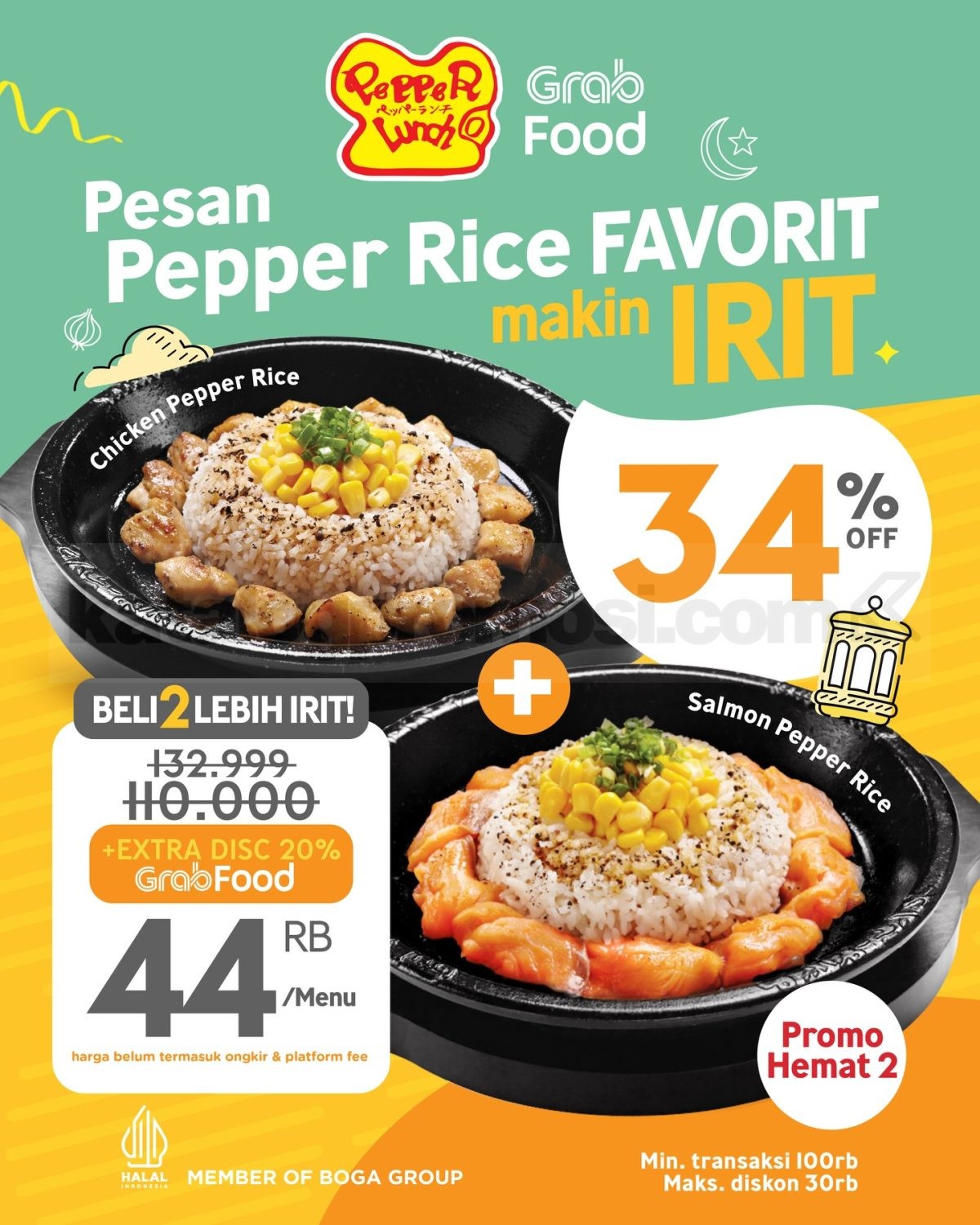 Promo berlaku selama periode promo dan mengikuti ketersediaan outlet Pepper Lunch di masing-masing aplikasi.