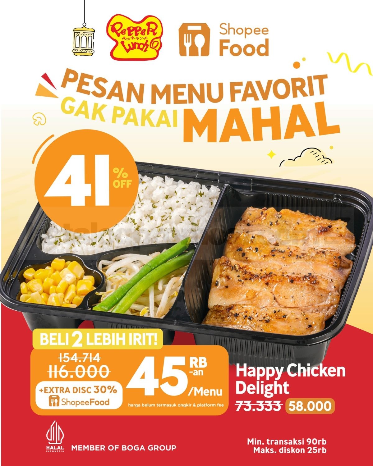 Promo hanya berlaku untuk pemesanan menu Pepper Lunch melalui aplikasi GoFood, ShopeeFood, GrabFood, dan BOGA App.