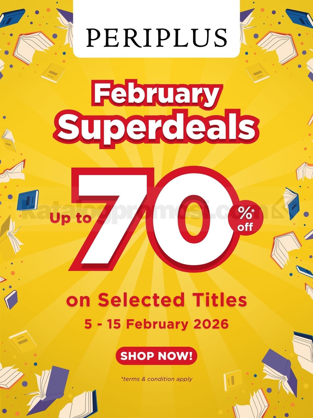 Promo Periplus February Superdeals diskon buku hingga 70% dengan berbagai judul pilihan berlaku mulai 5 – 15 Februari 2026 di Periplus.com & Ekiosk.