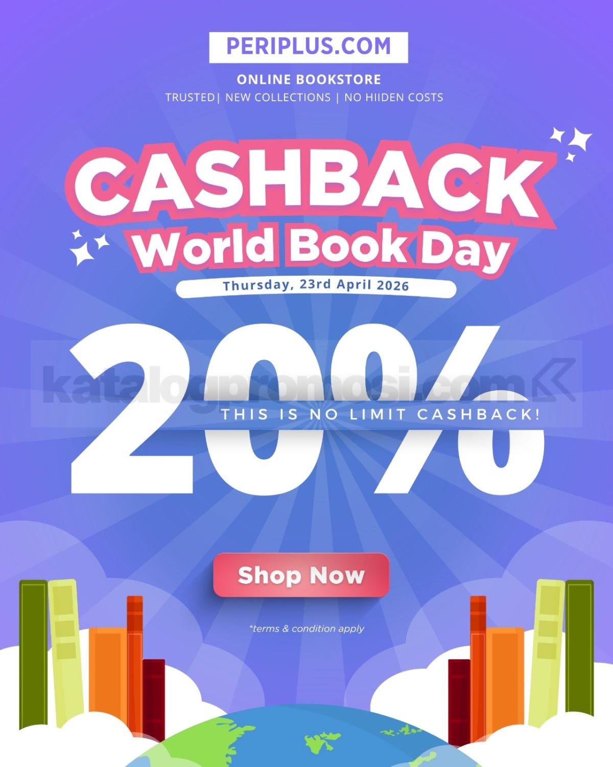 World Book Day di Periplus jadi momen yang pas banget buat kamu berburu buku favorit 📚✨. Lewat promo ini, kamu bisa menikmati cashback 20% tanpa batas untuk produk buku yang sudah ditandai khusus dengan logo cashback 20%.