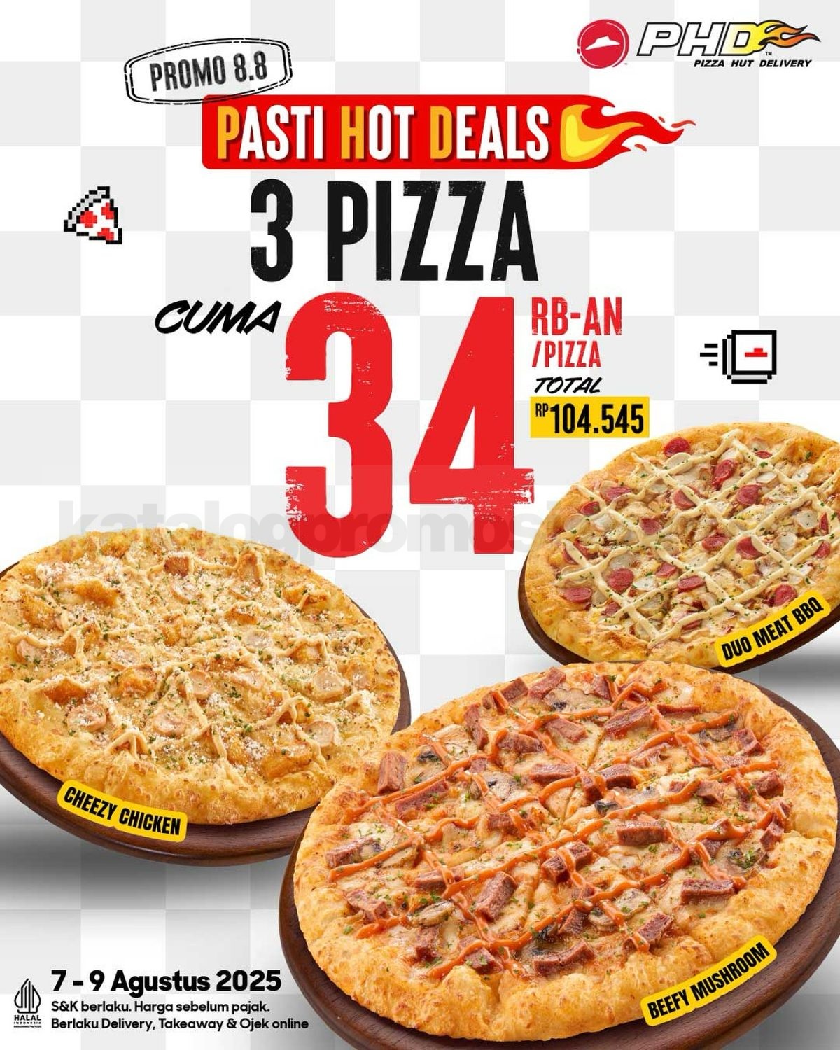 Berlaku di outlet PHD melalui takeaway online dan offline, delivery, ojek online, dan customer service