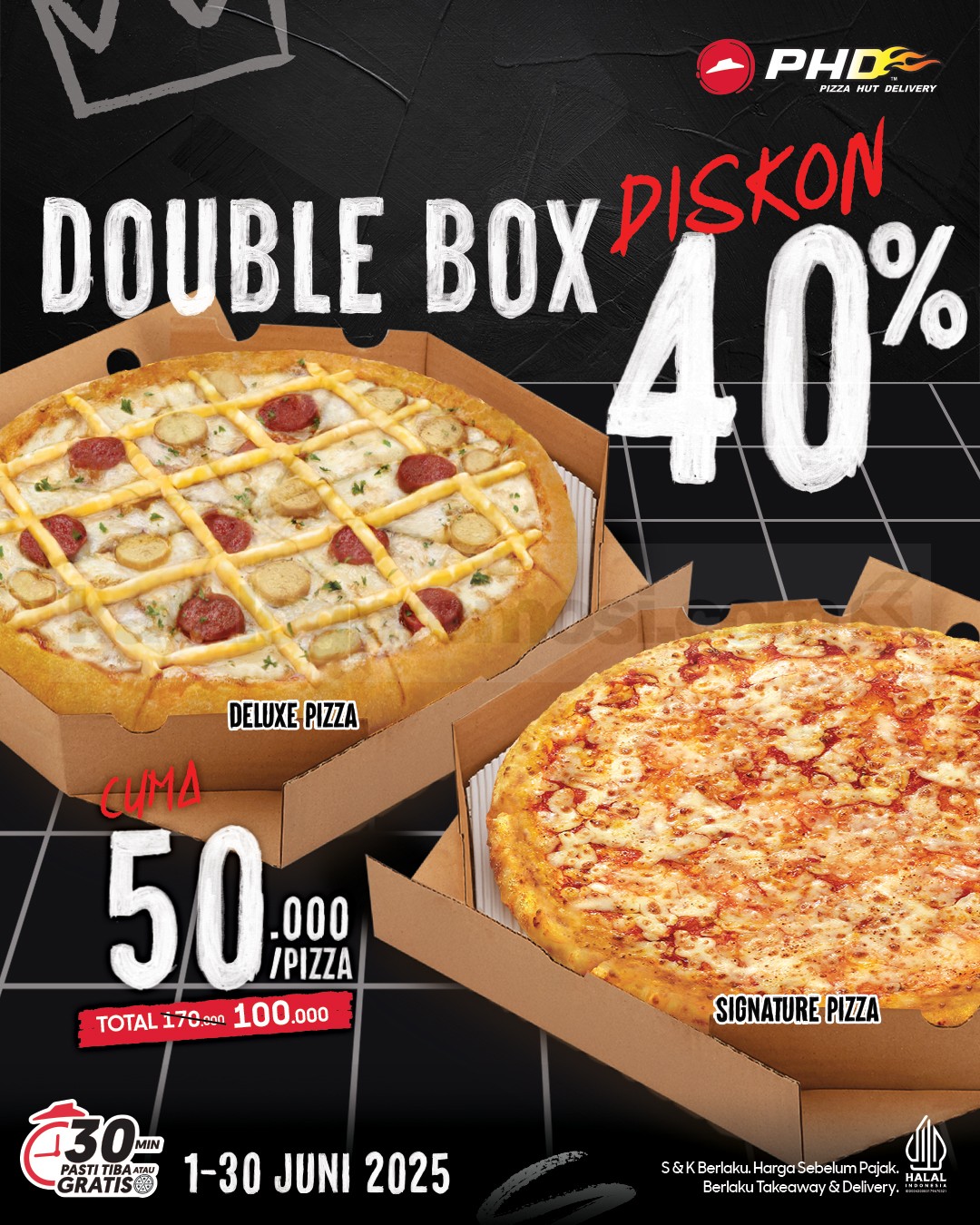 Promo PHD Diskon Hingga 40% berlaku 1–30 Juni 2025! Dapatkan Double Box, Fun Pizza, Signature Pizza, dan Deluxe Pizza mulai Rp13rb.