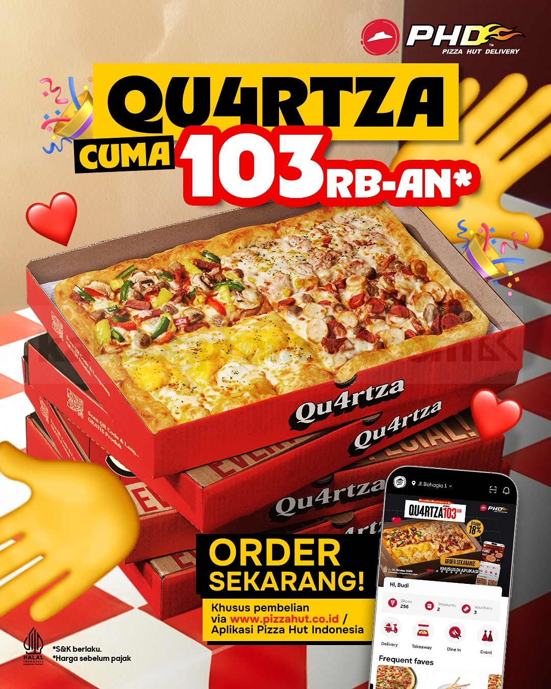 🥳 Siap-siap, nih! Pizza Hut Indonesia lagi bagi-bagi rejeki spesial buat kamu rayain ulang tahun ke-18 mereka. Ada promo Pizza Hut diskon 18% untuk QU4RTZA yang bisa kamu order via aplikasi Pizza Hut Indonesia atau di website resmi mereka, www.pizzahut.co.id
