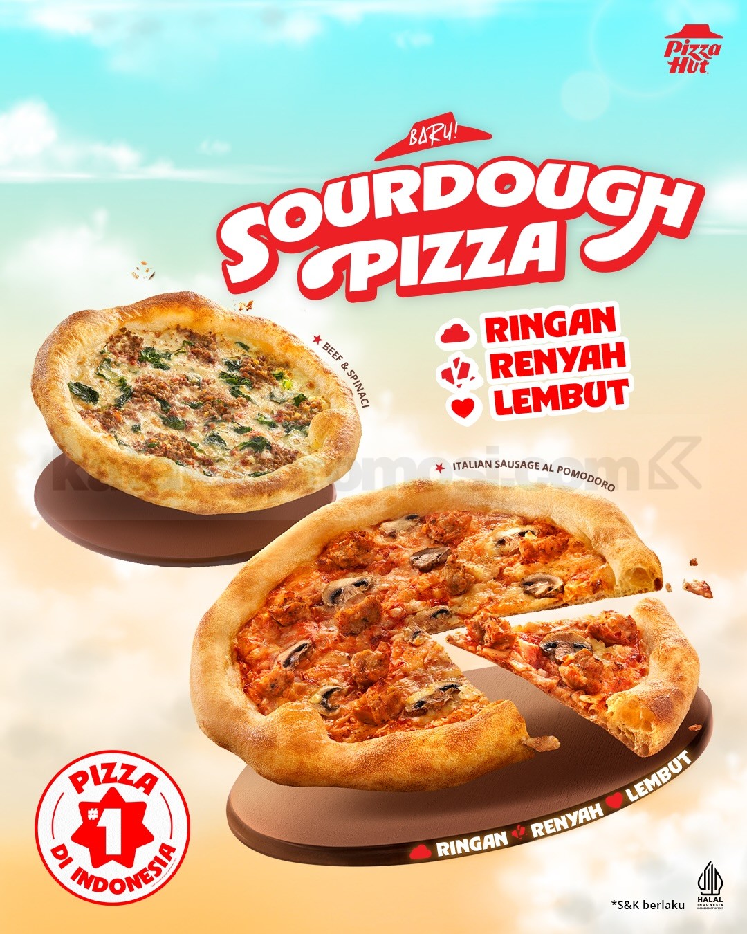 Promo Pizza Hut NEW! Sourdough Pizza dengan topping spesial dan autentik, pilihan menu baru tersedia berlaku selama persediaan masih ada di seluruh outlet