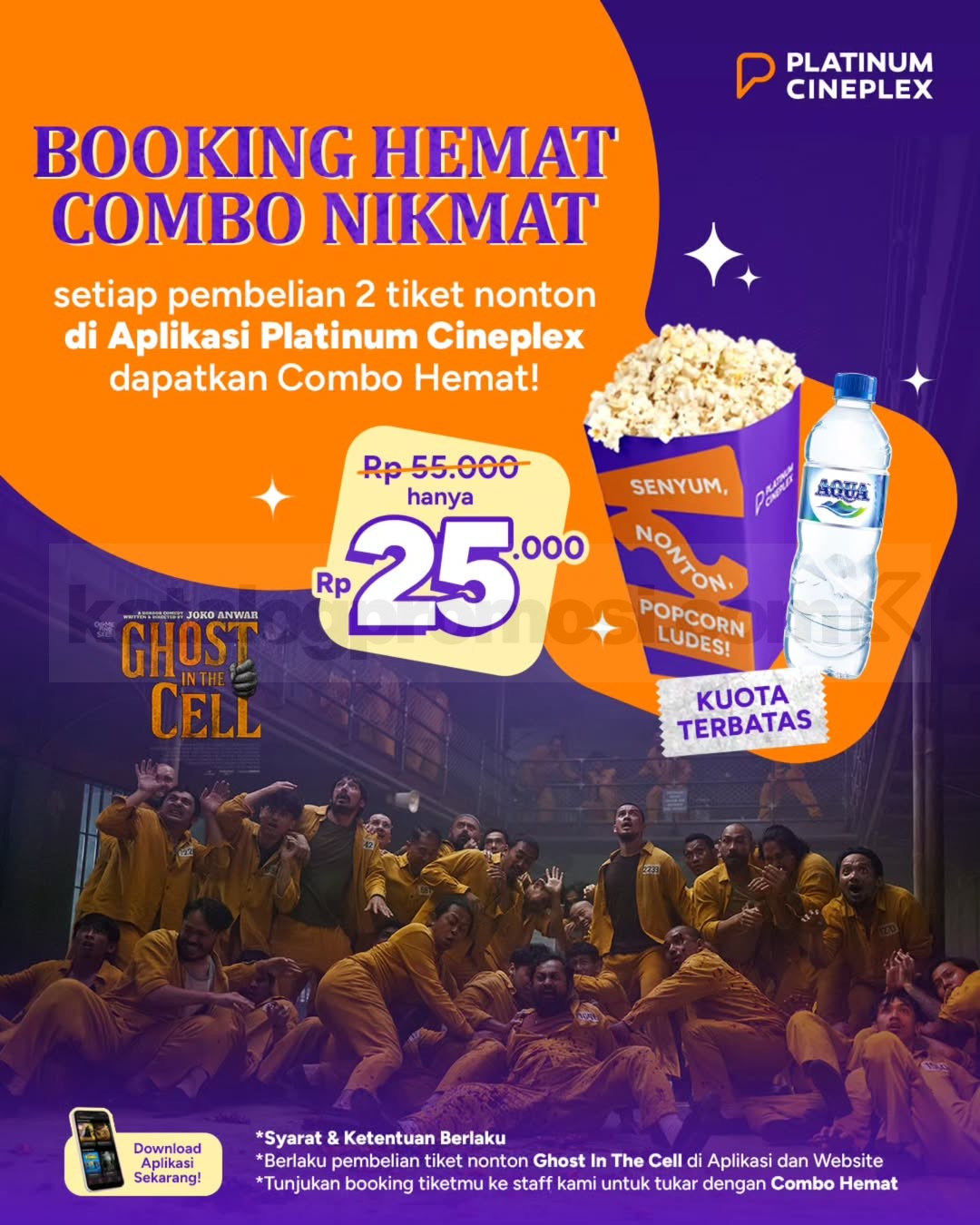 Promo Platinum Cineplex Combo Hemat Rp. 25.000 popcorn dan minuman dengan beli 2 tiket Ghost In The Cell berlaku selama kuota tersedia