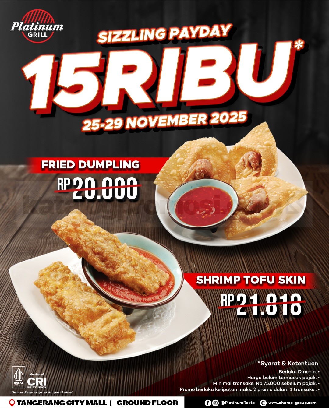 Promo ini hanya berlaku untuk dine-in di Platinum Grill Tangcity Mall Lantai GF.