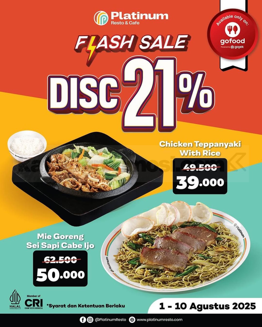 Promo Platinum Resto & Cafe Online Delivery Menu favorit Diskon hingga 16% berlaku 1–31 Oktober 2025 via GoFood, GrabFood, ShopeeFood.