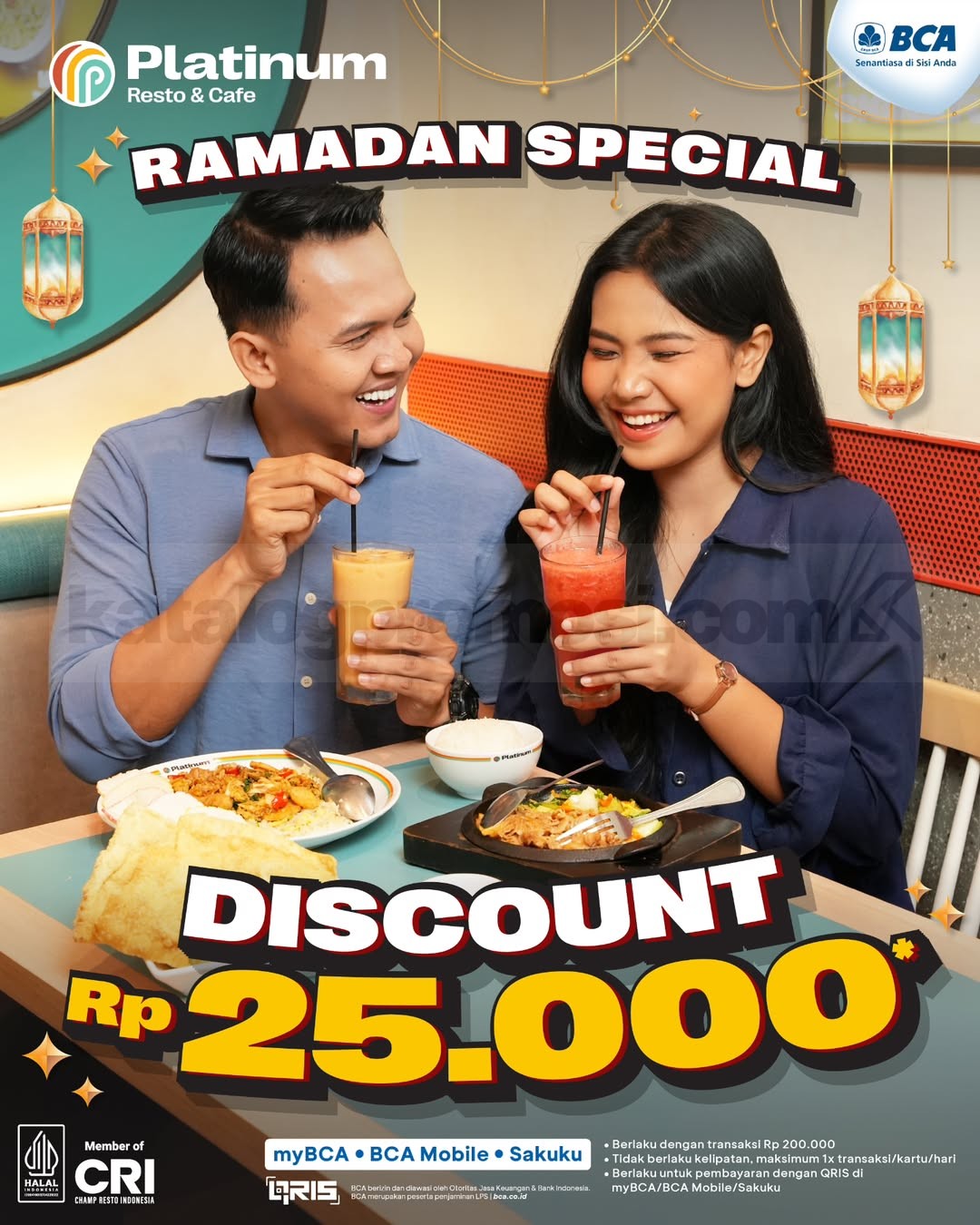 Promo Platinum Resto & Cafe Special Ramadan Diskon Rp. 25.000 untuk pembayaran QRIS myBCA, BCA Mobile, Sakuku berlaku hingga 14 Maret 2026 di seluruh outlet