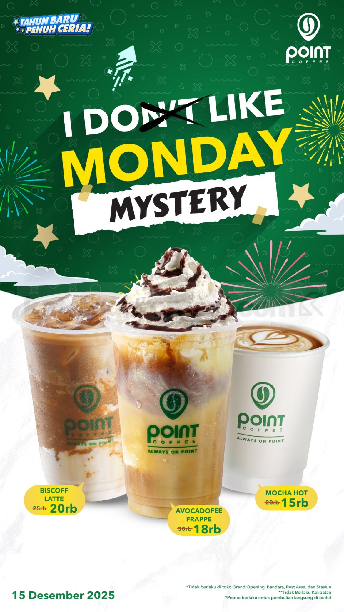 Jangan biarkan tanggal tua ngerusak mood kamu! Segera manfaatkan Promo Point Coffee I Do Like Monday buat nikmatin minuman favorit dengan harga super hemat. Cuma 20 ribuan loh! Ajak temen kamu dan bikin hari Senin makin semangat bareng kopi dari Point Coffee! 🥰☕