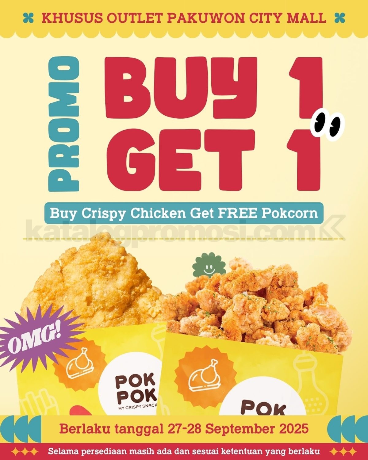 Promo PokPok Pakuwon City Mall Beli 1 Crispy Chicken Gratis 1 Pokcorn, Berlaku mulai tanggal 27-28 September 2025.