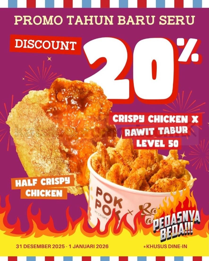 Promo tahun baru dari PokPok ini pas buat nutup tahun dengan rasa pedas dan buka tahun baru dengan menu crispy favorit. Selama periodenya masih jalan, langsung mampir ke outlet terdekat dan nikmati diskonnya.