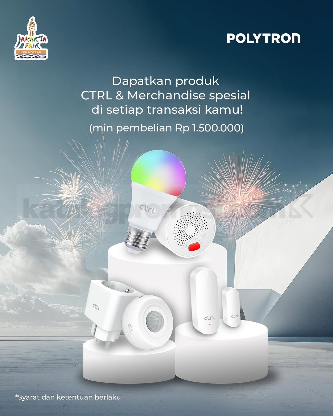 Cuma dengan minimal transaksi Rp1.500.000, kamu bisa bawa pulang produk smart home Polytron seperti: