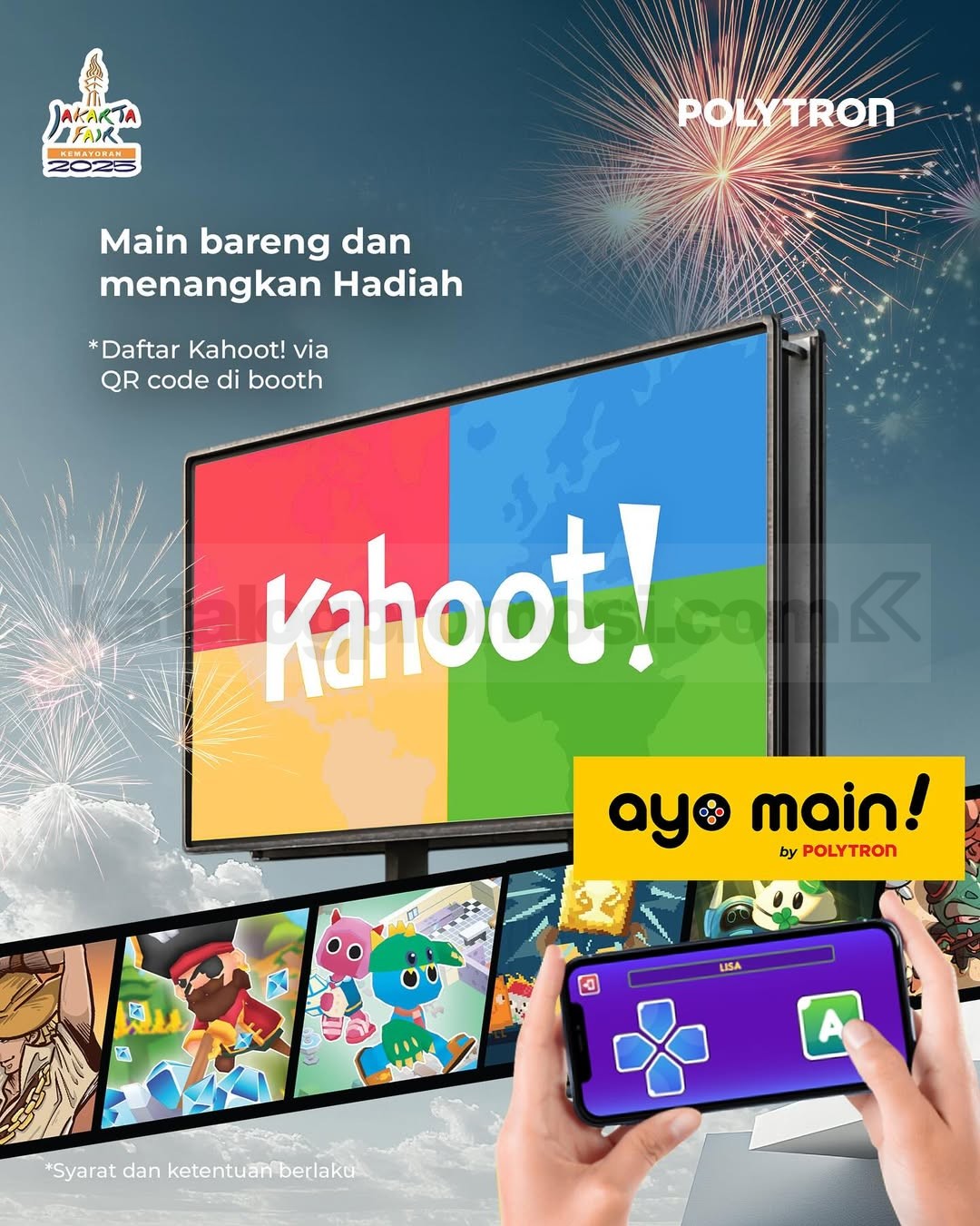 Main bareng Kahoot di booth Polytron, seru-seruan sambil dapetin hadiah menarik. Pendaftaran cukup scan QR Code di booth.