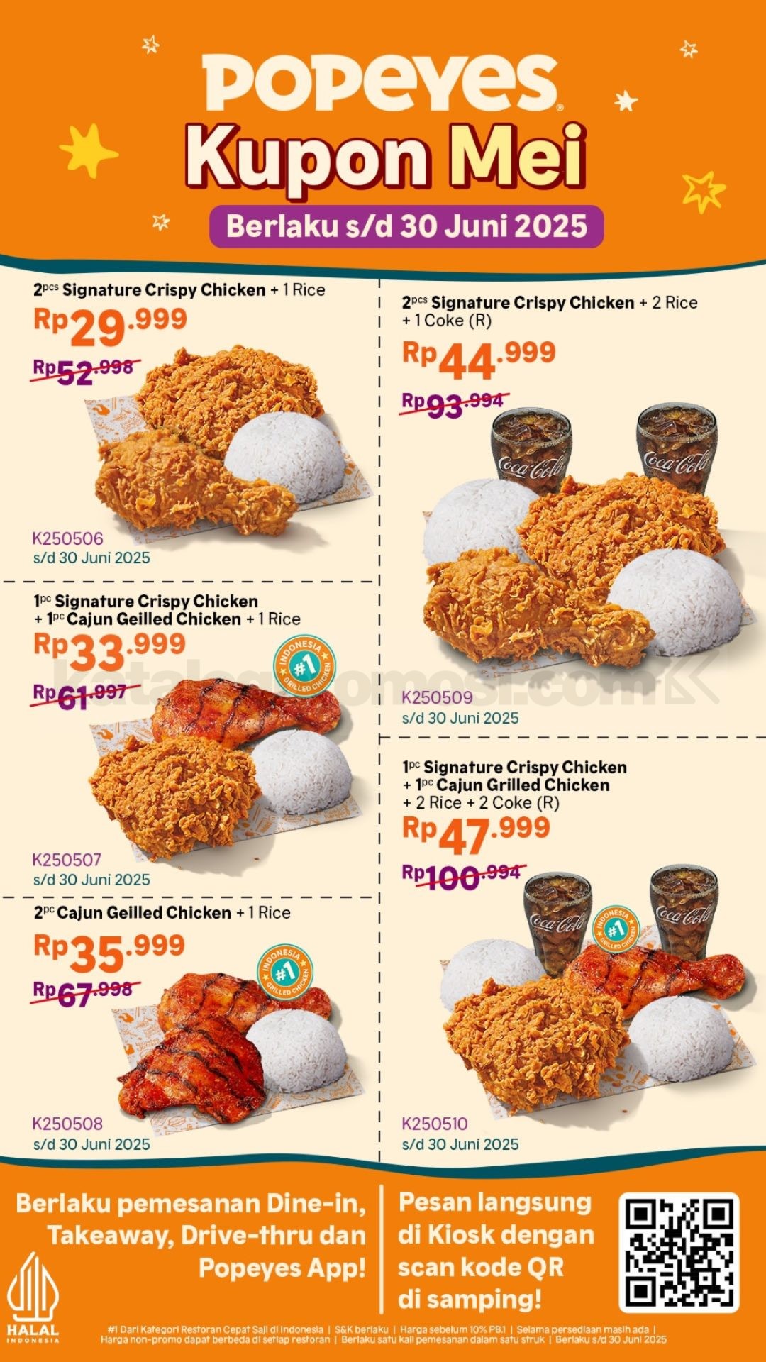 Jangan sampai ketinggalan kesempatan menikmati menu favorit Popeyes dengan hemat! Ajak teman dan keluarga, dan jadikan setiap momen lebih spesial dengan Promo Kupon DESEMBER 2025 ini.