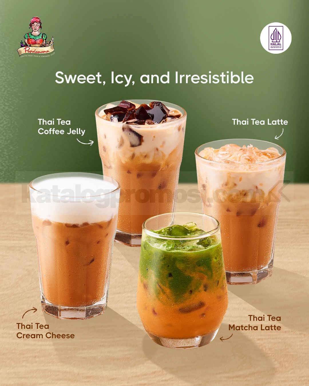 π Cek gambar promo Popolamama di bawah ini untuk lihat varian Thai Tea Series yang lagi jadi favorit pecinta minuman manis!