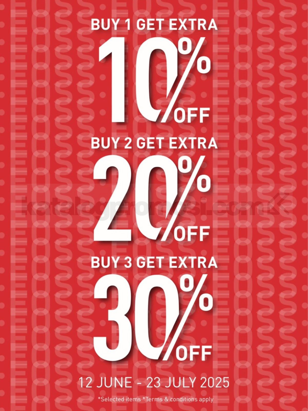 - Diskon 30% untuk pembelian 3 item atau lebih dengan harga normal.