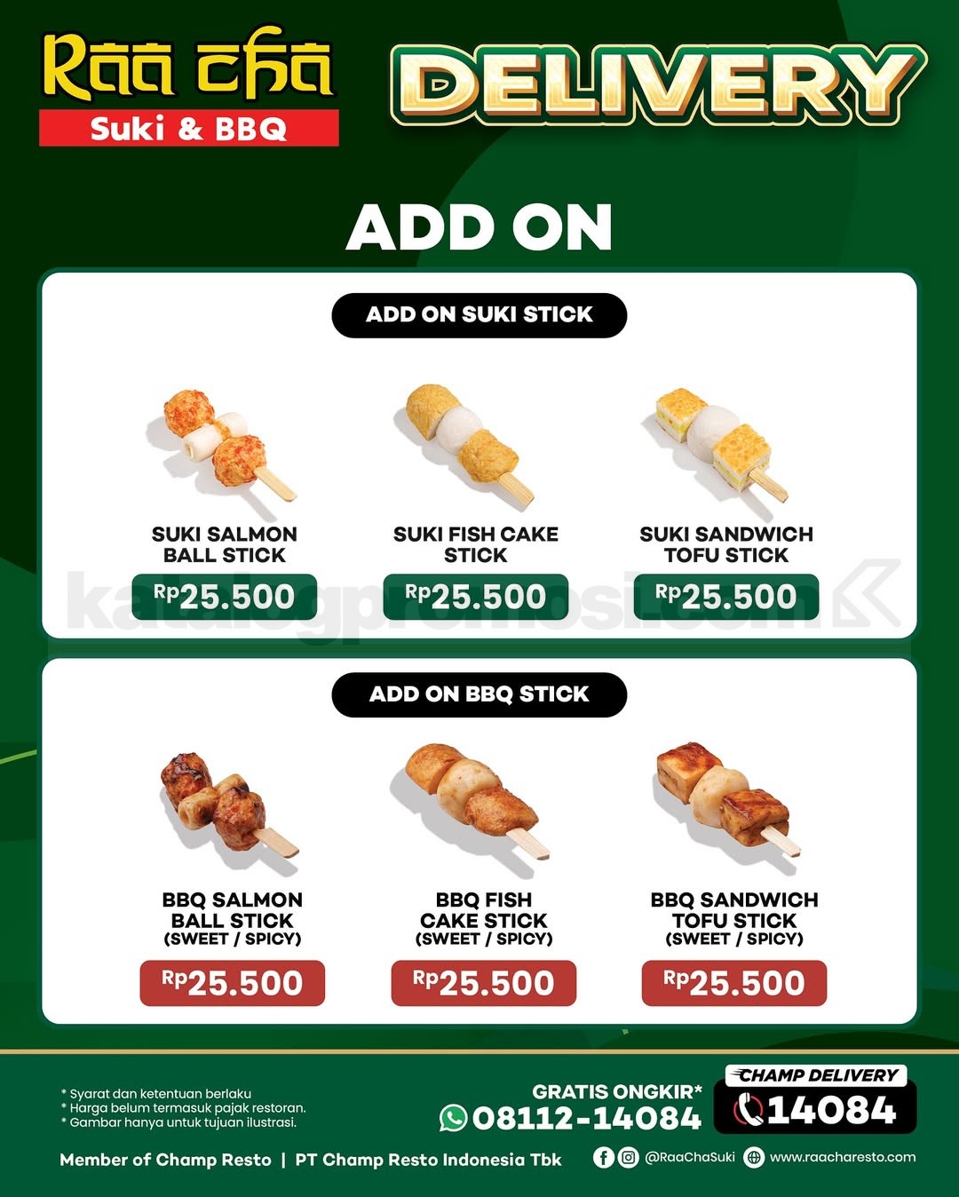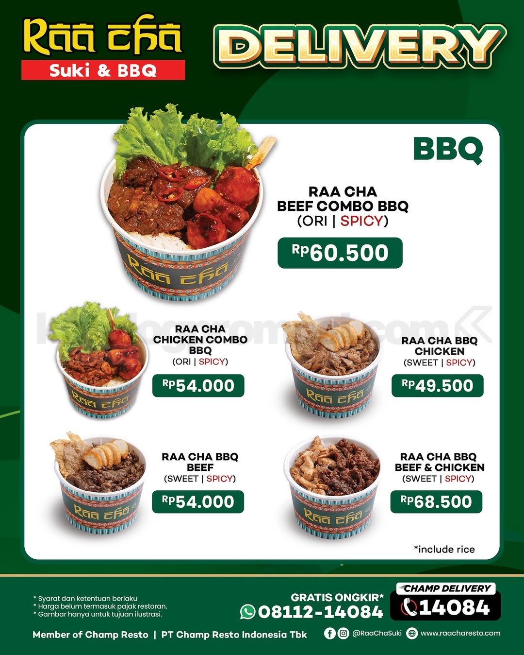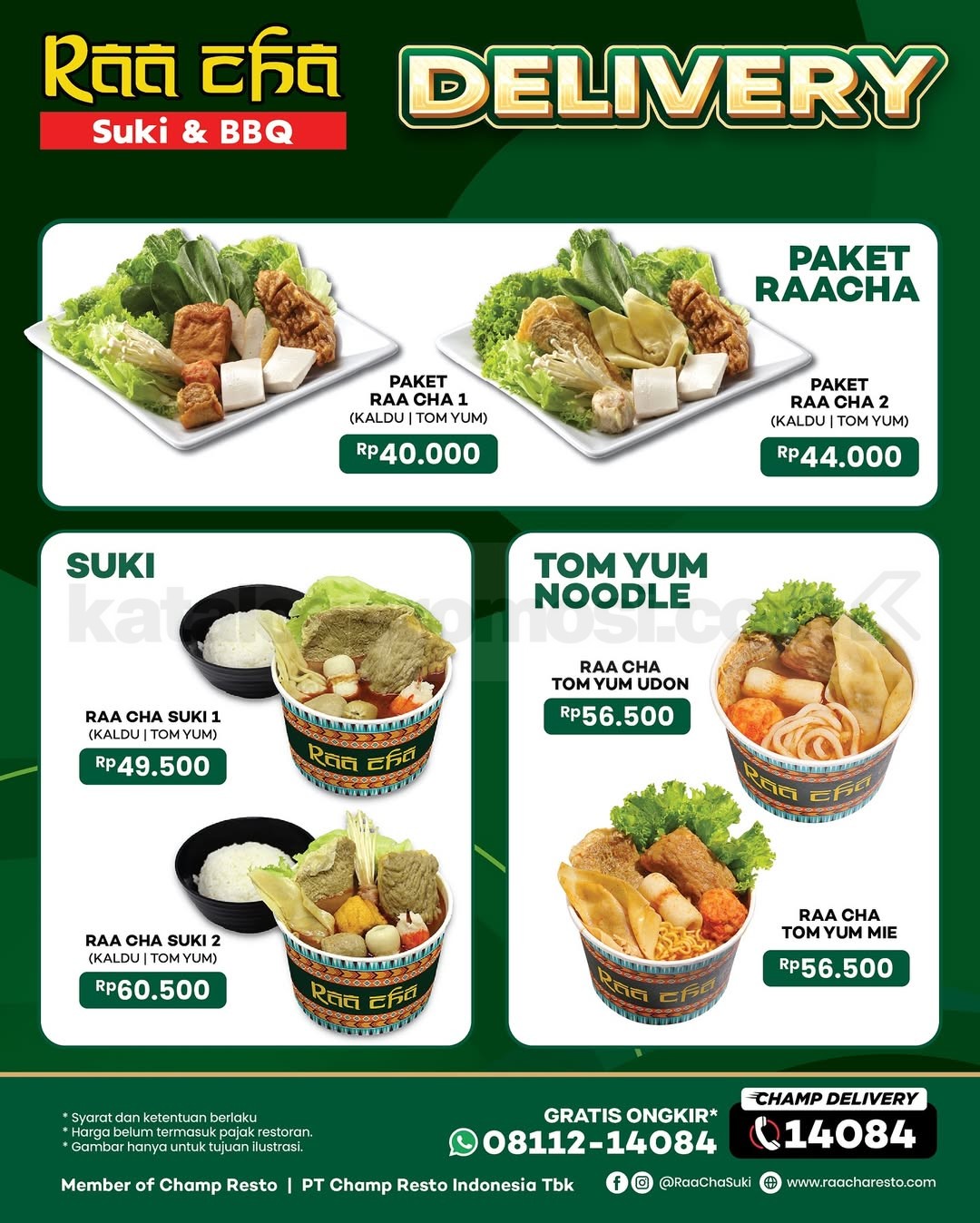Promo Raa Cha Delivery – Menu Suki, BBQ, dan Paket Hemat mulai Rp40.000, pesan via CHAMP Delivery 14084 atau WhatsApp sekarang juga!