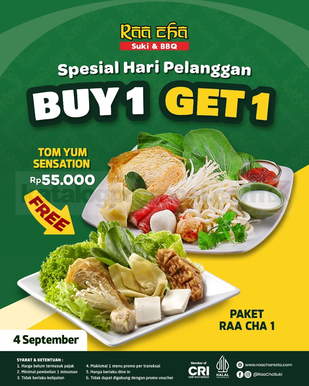 Yuk, nikmati promo Raa Cha Harpelnas Buy 1 Get 1, seru-seruan makan lebih hemat bareng orang terdekat!