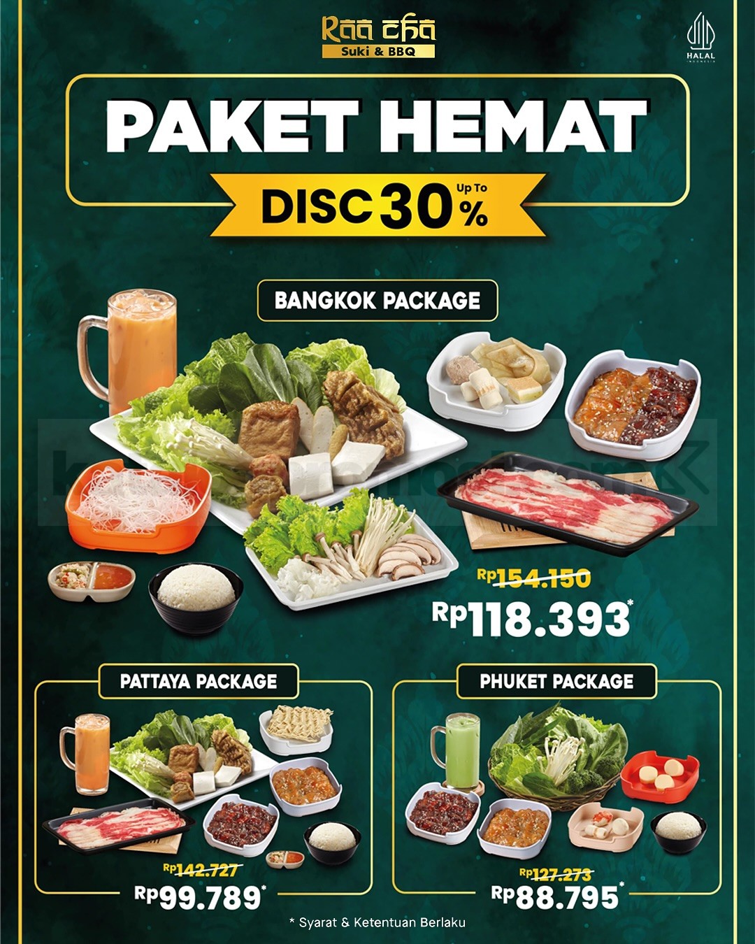 Promo Raa Cha Pajajaran Bogor Spesial Paket Hemat Diskon Hingga 30%, berlaku setiap hari Senin – Jumat