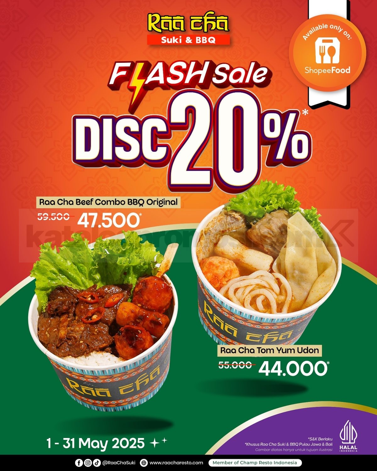 Promo hanya berlaku untuk dine-in di seluruh outlet Raa Cha.