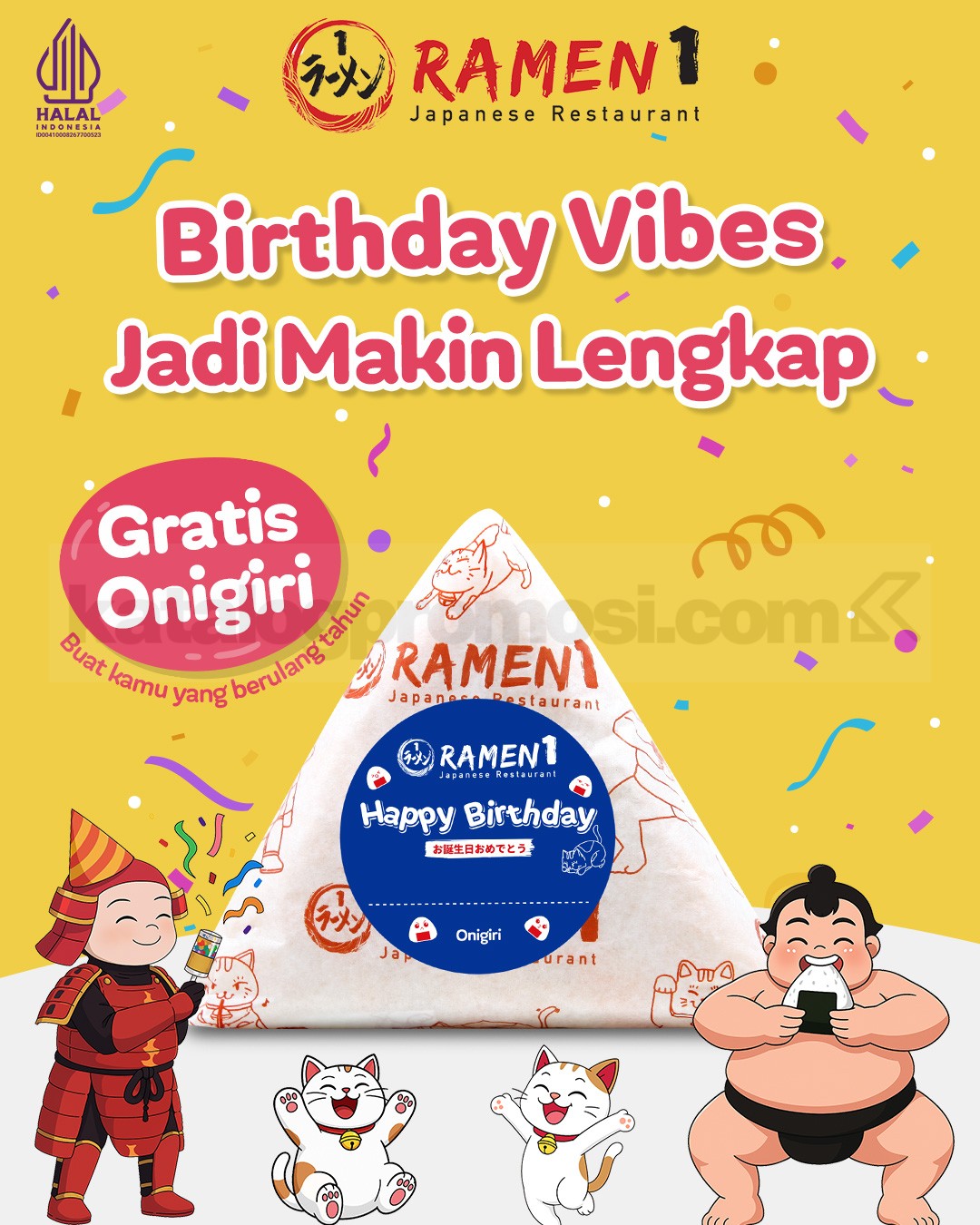 Ulang tahun makin lengkap 🎉 Promo Ramen 1 Birthday Treats Gratis Onigiri siap bikin momen spesial kamu jadi lebih seru dan berkesan.