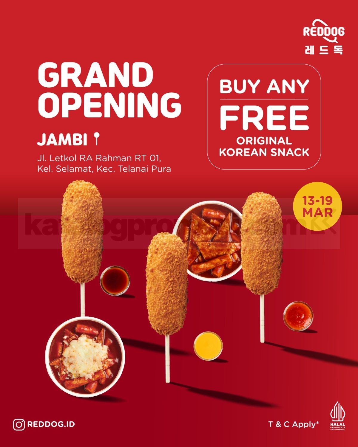 Promo Reddog Grand Opening Jambi Free Korean Snack beli menu apa saja gratis snack Korea berlaku mulai tanggal 13 Maret 2026 – 19 Maret 2026 di Jambi.