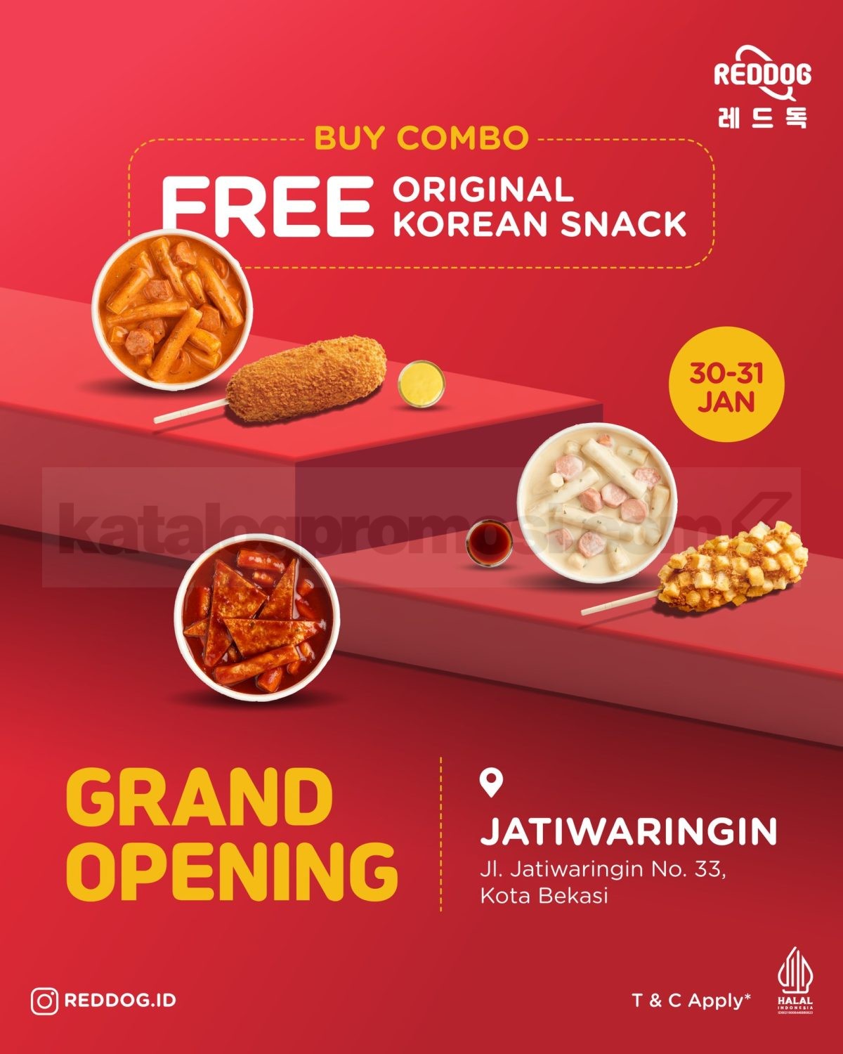 Promo REDDOG Grand Opening Jatiwaringin Free Korean Snack dengan mekanisme buy any free snack Korea berlaku mulai 30-31 Januari 2026 di Jatiwaringin Bekasi.