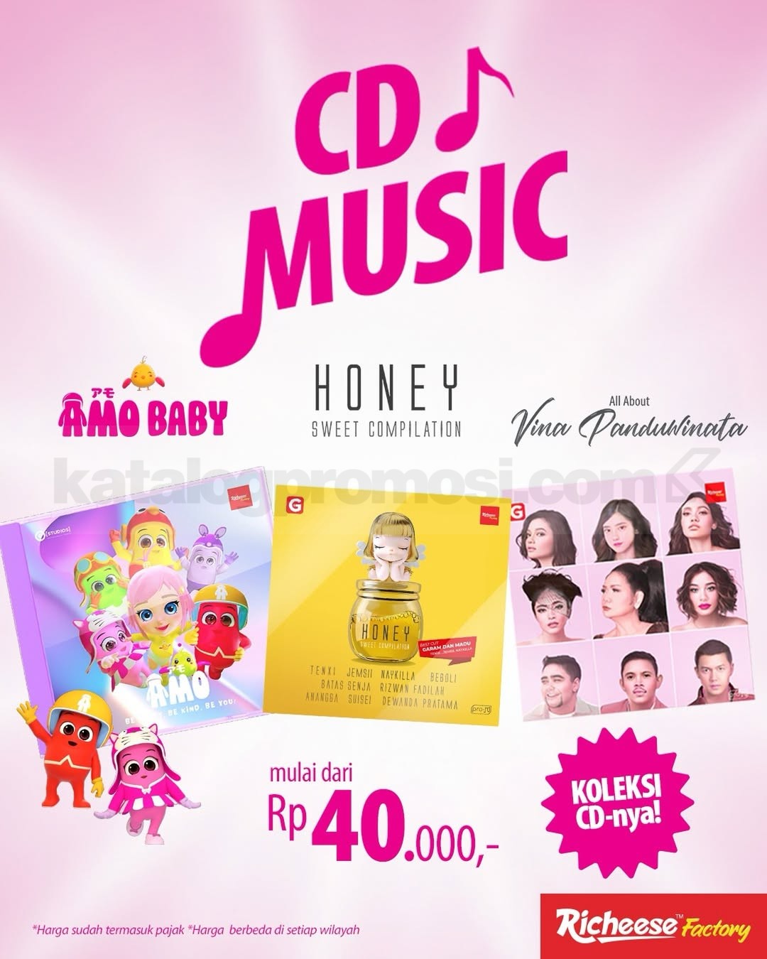 Promo Richeese Factory CD Music mulai Rp. 40.000, pilih dari Honey Sweet Compilation, Vina Panduwinata, Amo Baby, berlaku untuk dine-in, takeaway & ojol