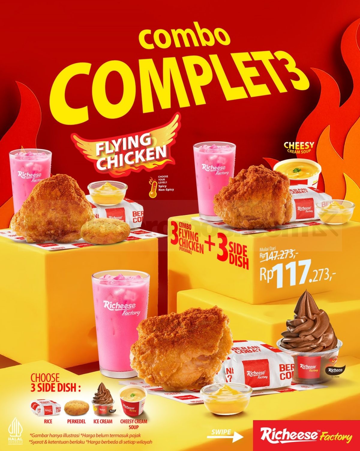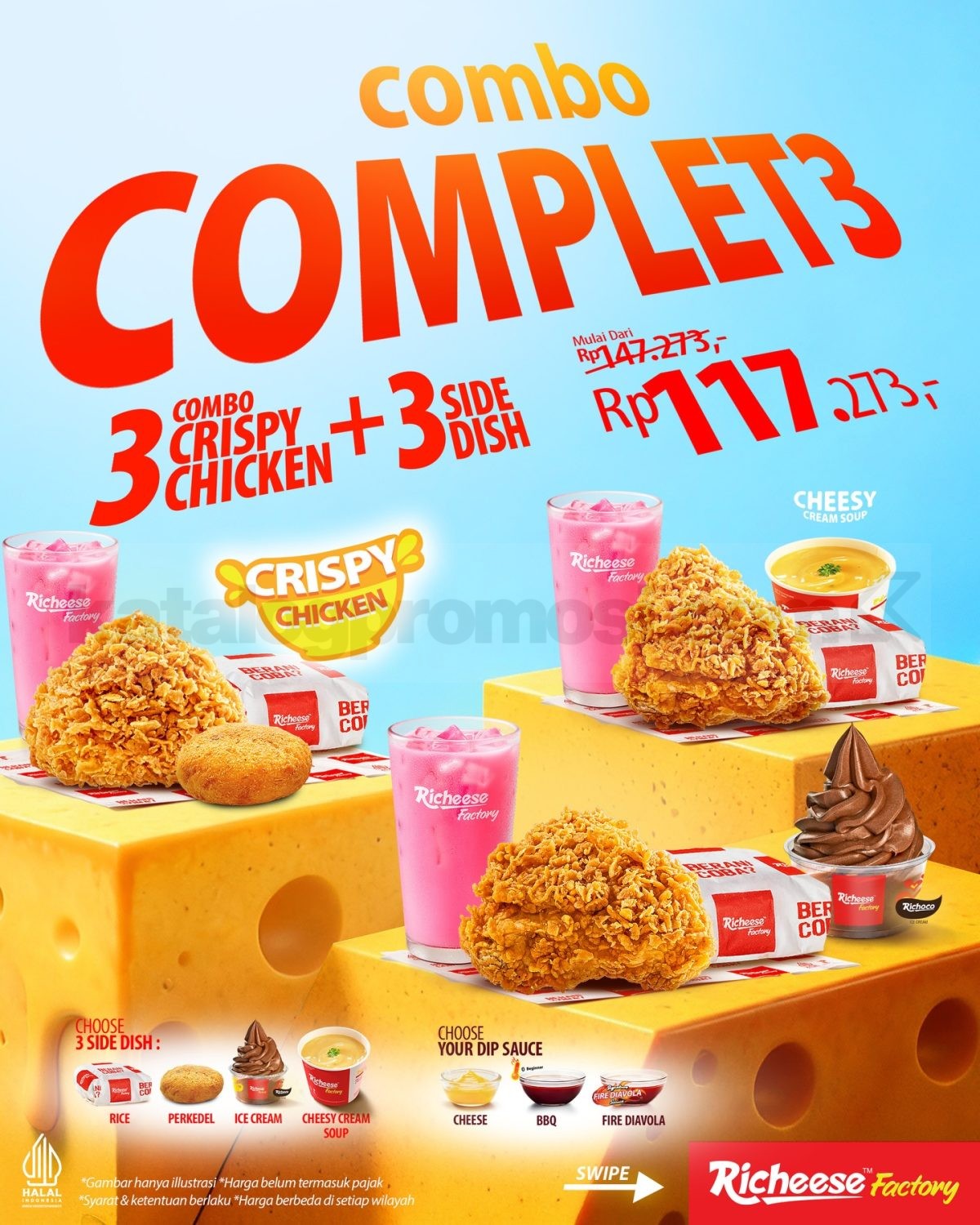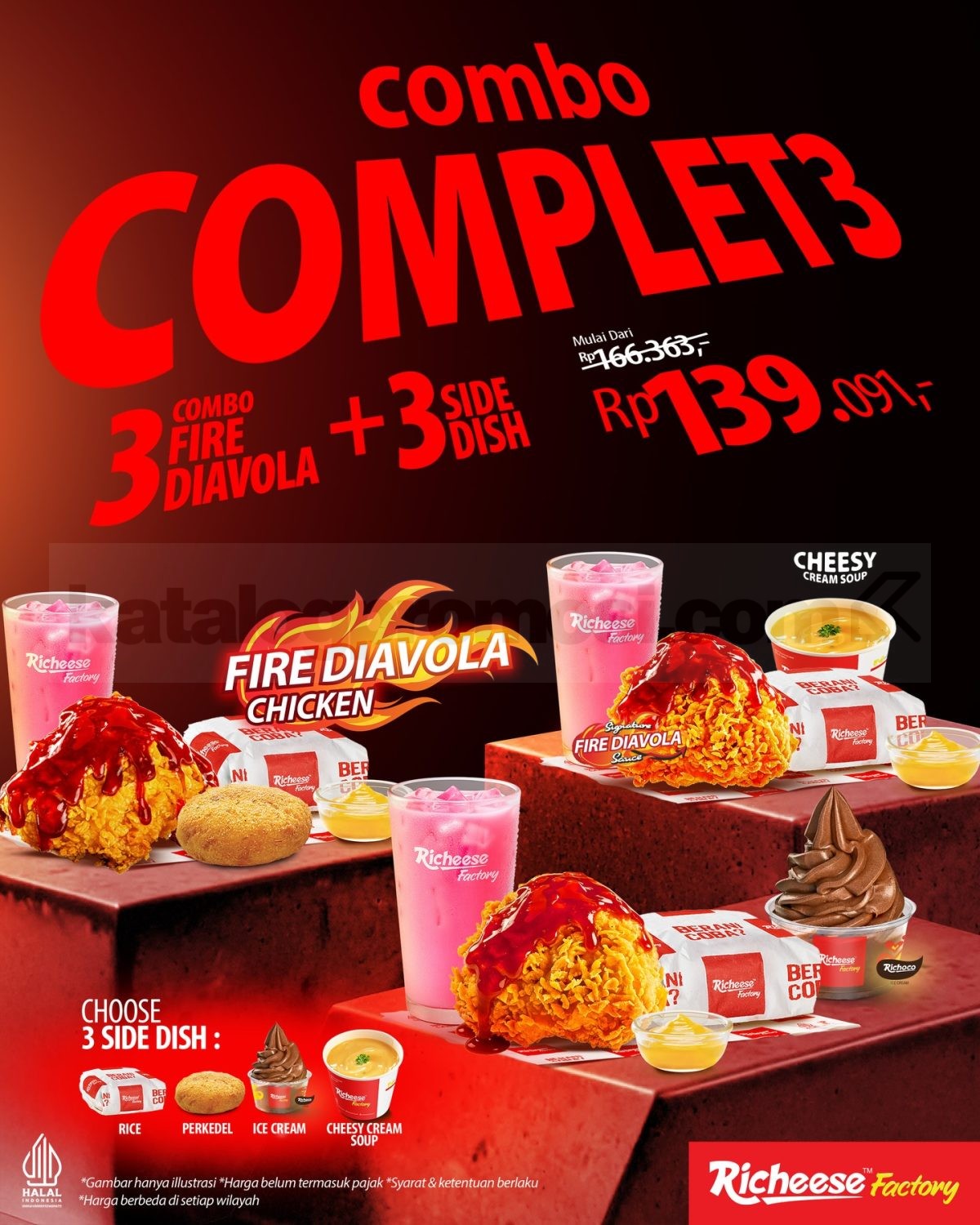 👉 Cek gambar Promo Richeese Factory Combo Complete di bawah ini untuk lihat susunan menu dan pilihan paketnya.