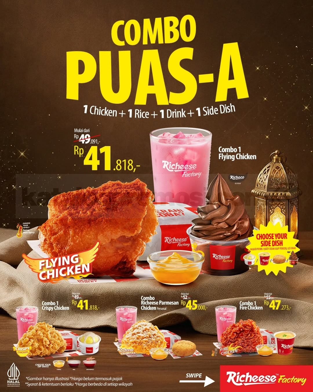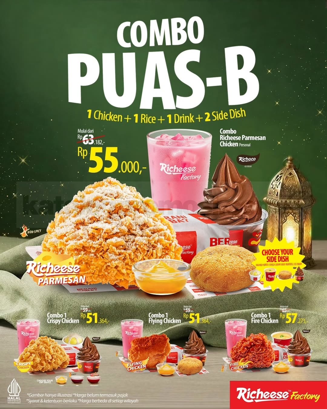 Promo Combo PUAS-A & PUAS-B tersedia selama periode promo yang berlaku di restoran Richeese Factory.