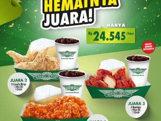 1 ekor ayam utuh khas Richeese yang juicy, 3 porsi nasi, 3 minuman segar, cheese sauce yang ngeju parah, plus… FREE 2 donuts! Yes, gratis dua donat empuk buat nemenin makanmu 😍