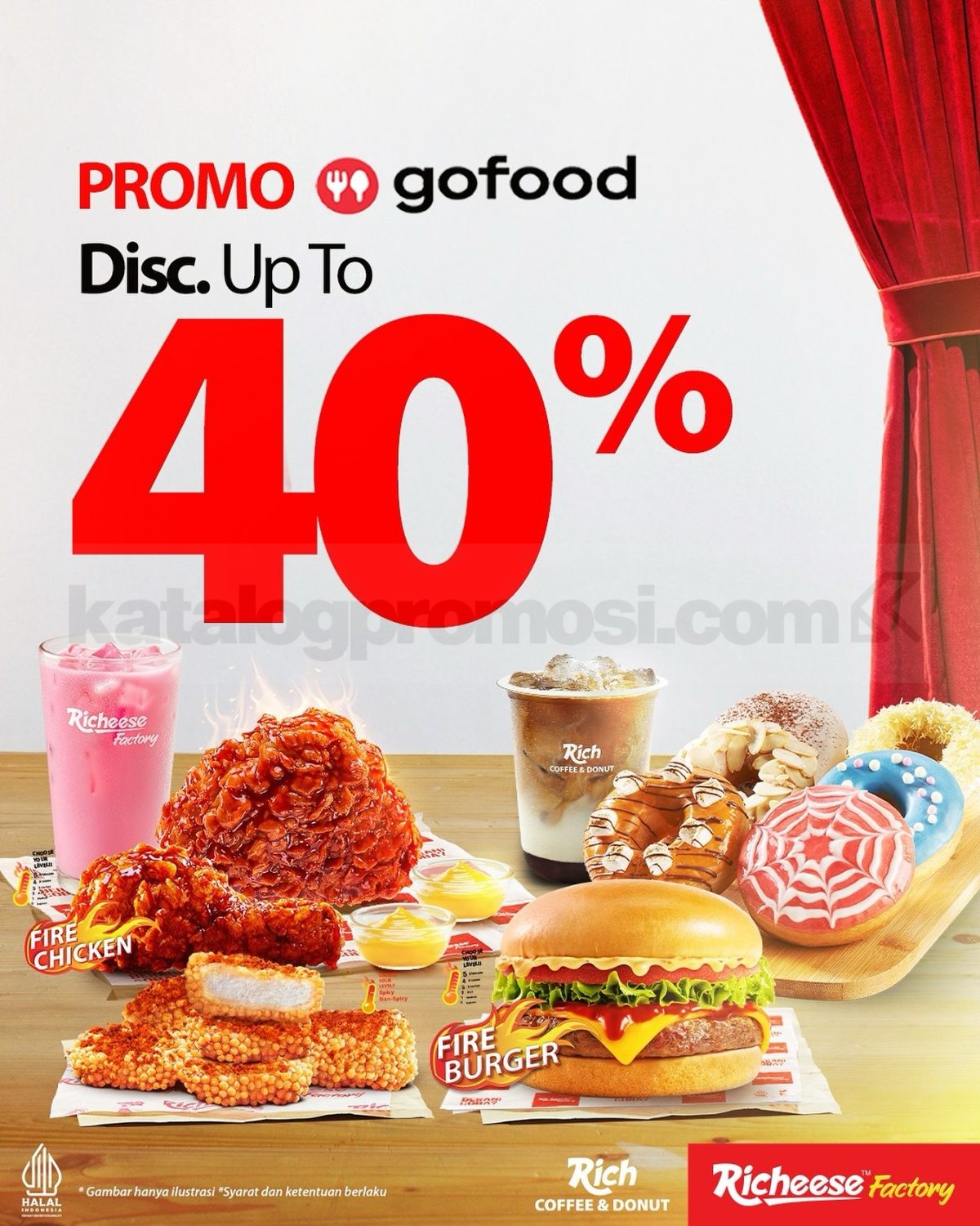 Promo berlaku untuk seluruh outlet Richeese Factory dan Rich Coffee & Donut di GoFood.